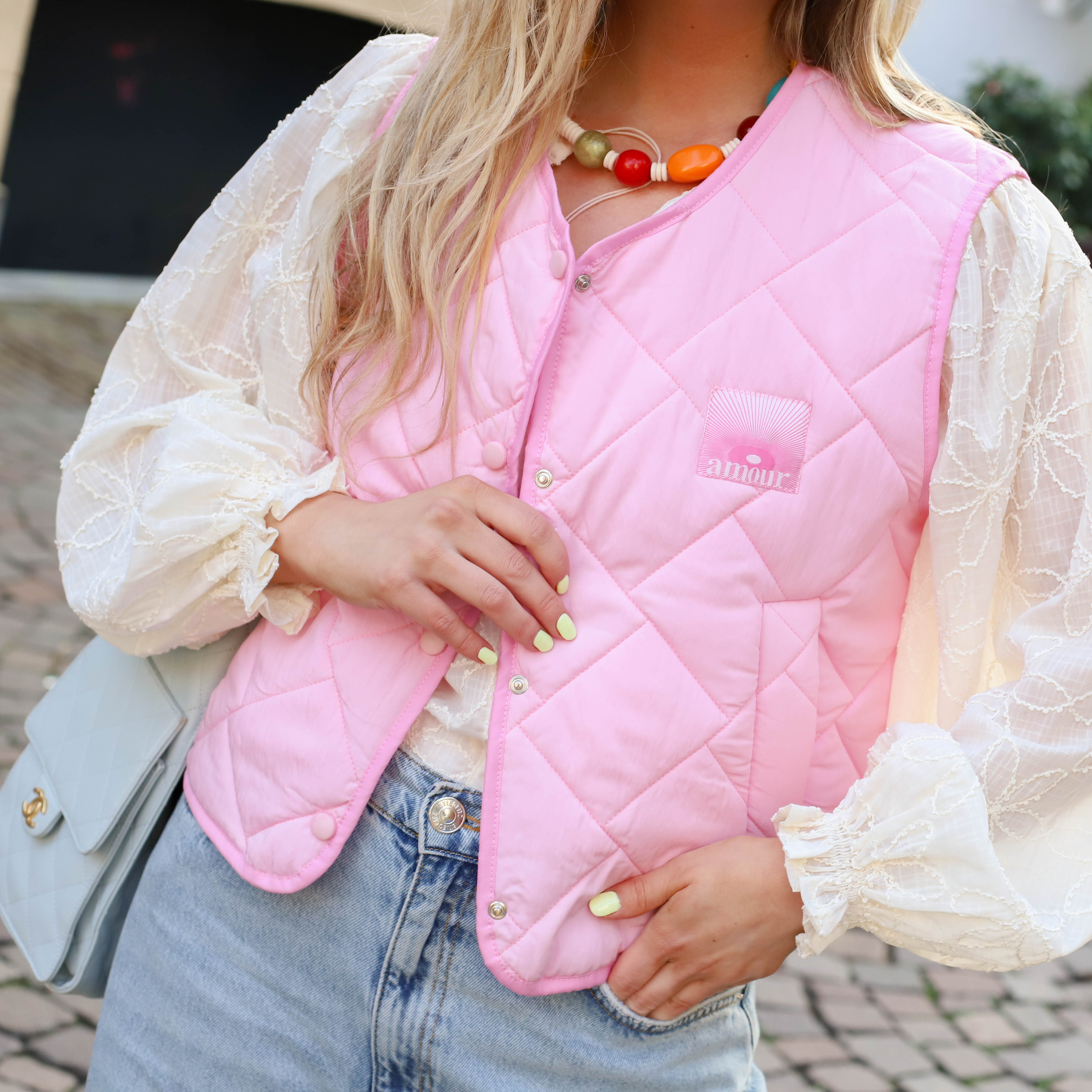 Amour gilet gekleurde letters roze