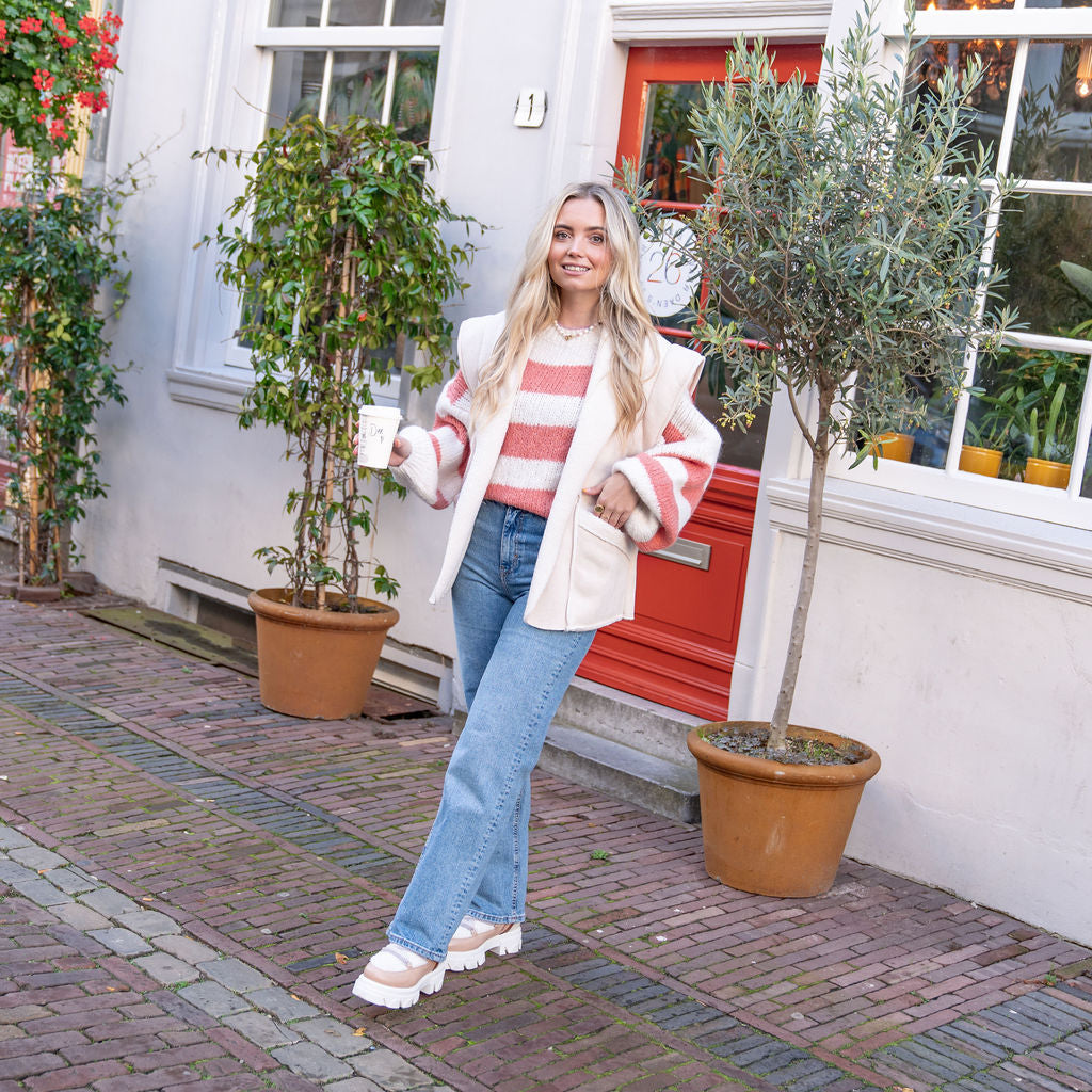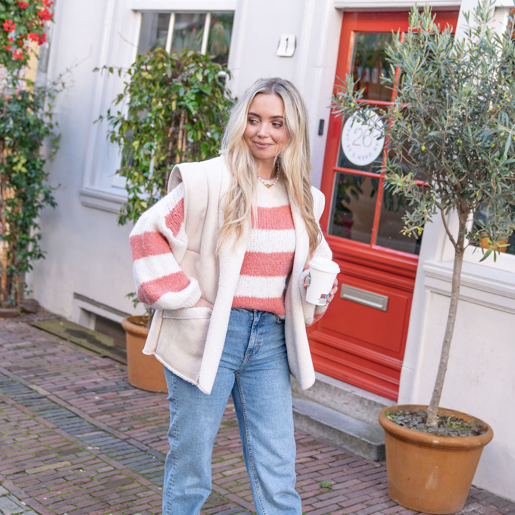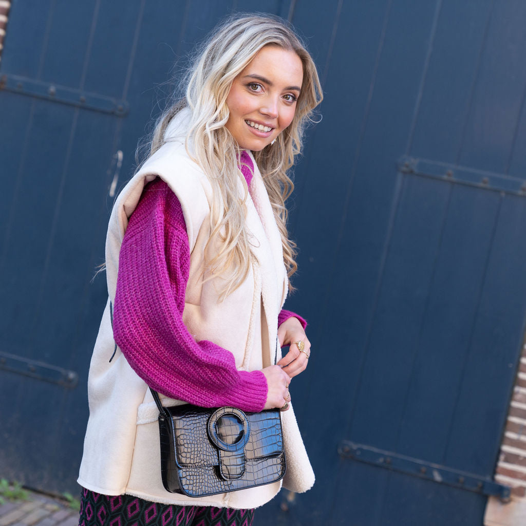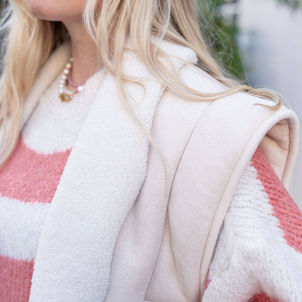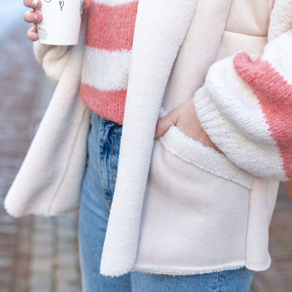 Mooie gilet met teddy tof aan de binnenkant en op de randen aan de voorkant. De buitenkant is super zacht. Het gilet heeft twee zakken en leuke details op de schouders. Combineer hem met een leuke jurk of legging!
