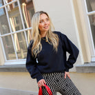 Mooie trui in het heel donkerblauw. De trui is oversized en staat leuk met een flared legging.
