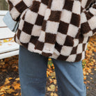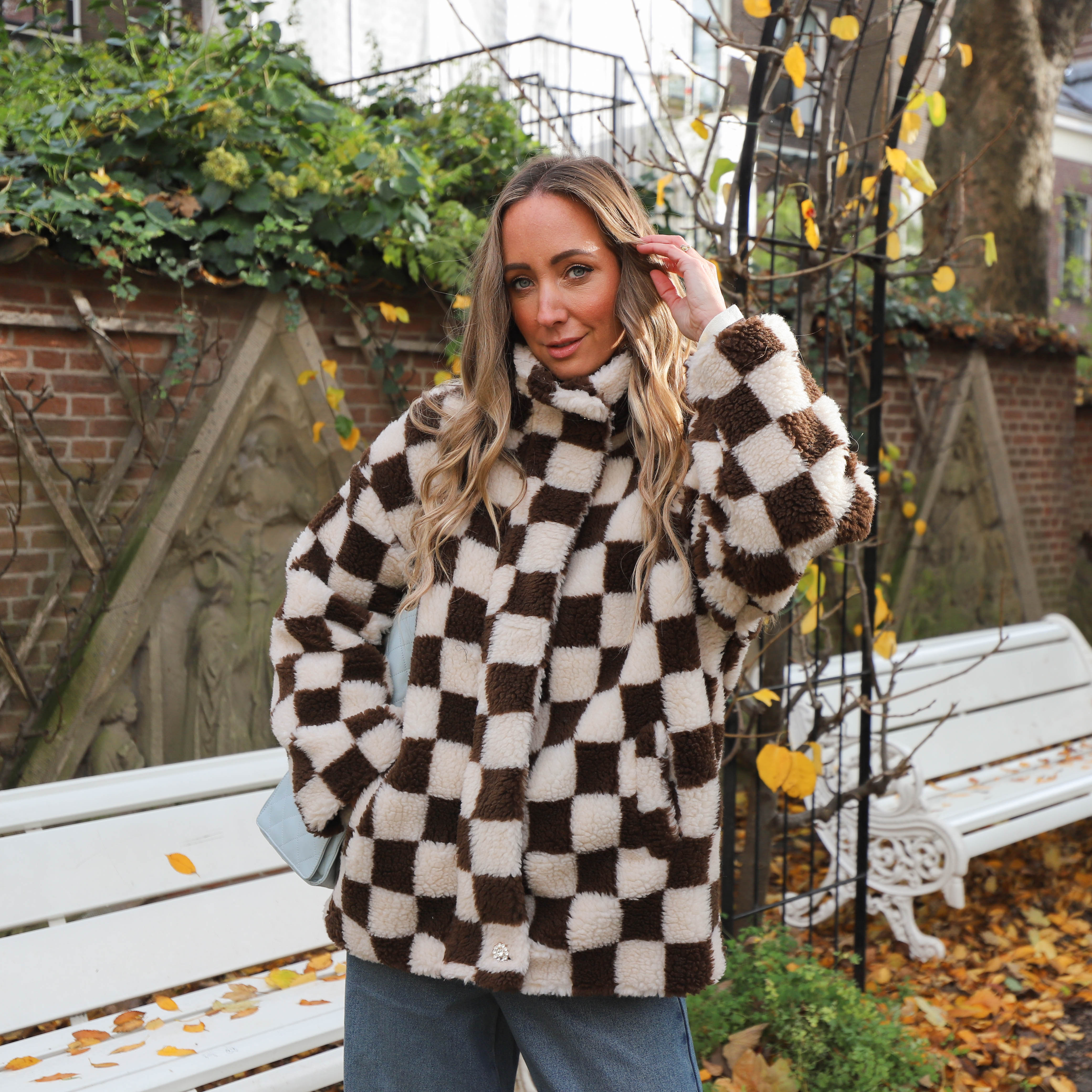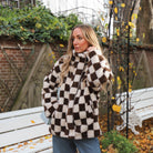 Dit Checked Teddy Jack is een opvallende en speelse toevoeging aan je outerwear collectie. Het jack is gemaakt van een heerlijk zachte, krullende teddy-stof en heeft een gedurfd blokjespatroon in bruin en ecru.
