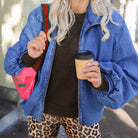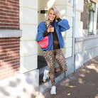 Dit korte, lichtblauwe denim jack heeft een unieke, oversized pasvorm die zorgt voor een speelse 'puf' look. De jas heeft een grote, opstaande kraag, een ritssluiting aan de voorkant en twee ruime opgestikte zakken. De elastische boord aan de onderkant benadrukt de unieke pasvorm.
