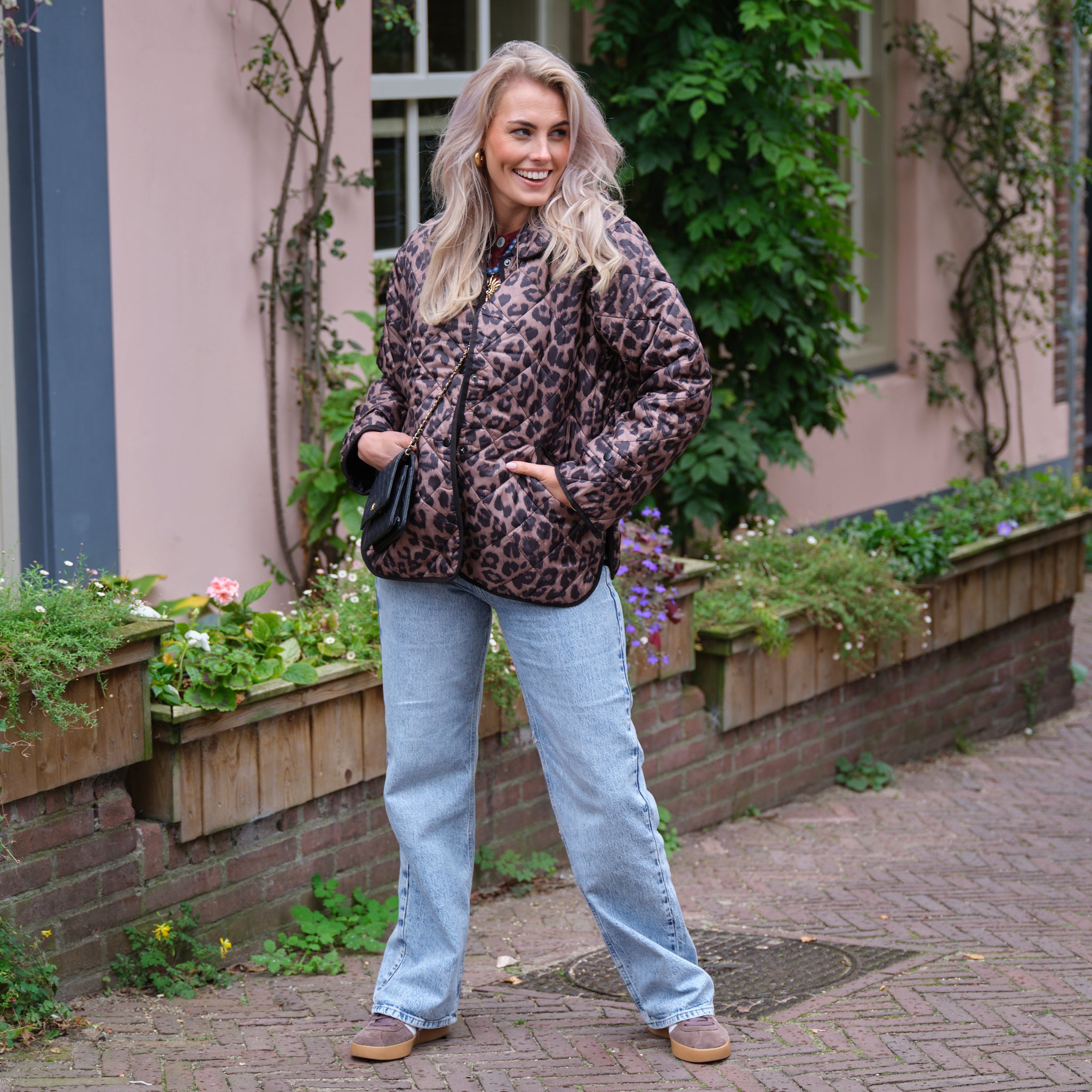 Dit pcEmily short print quilt jacket is de perfecte jas voor een fashion statement. Het jack is uitgevoerd in een opvallende, tijdloze luipaardprint en heeft een chique quiltpatroon. De grote, ronde kraag en de zwarte biesjes zorgen voor een verfijnde afwerking. Dit jack is licht van gewicht, maar biedt voldoende warmte en is ideaal voor het tussenseizoen. Combineer dit jack met een zwarte jeans en laarzen voor een stoere, trendy look, of draag hem over een jurk om je outfit een speelse touch te geven.