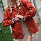 Dit Fringe Jack is een stoere en trendy toevoeging aan je kledingkast, geïnspireerd op de westernstijl. Het jack is uitgevoerd in een zachte suède-look stof in roest kleur. De mouwen, borst en rug zijn verrijkt met lange, zwarte franjes die zorgen voor dynamiek en beweging. Dit jack heeft een klassieke kraag, een knoopsluiting en een relaxte, oversized pasvorm.