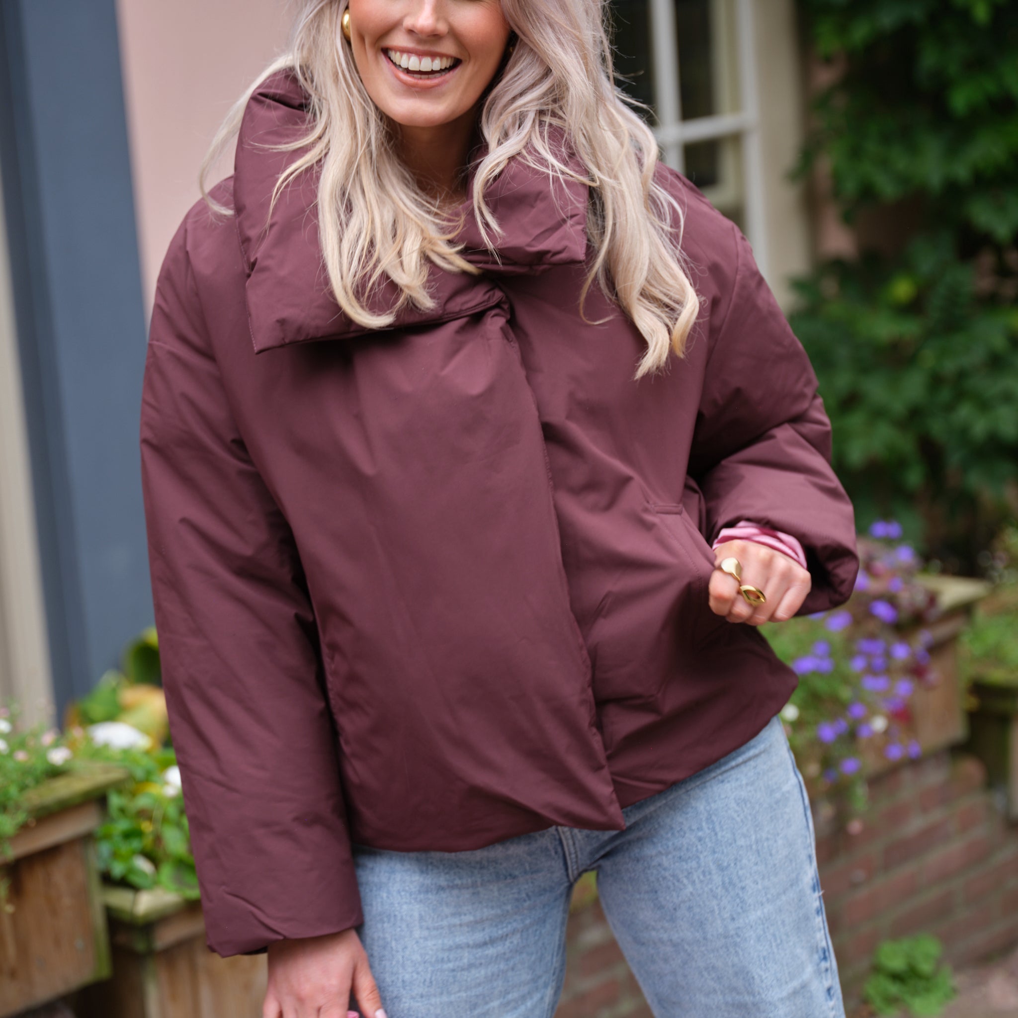 Deze Puffer Jack Bordeaux is dé must-have voor koude dagen. De jas valt op door zijn chique, diepe bordeauxrode kleur en de opvallende, extra grote opstaande kraag die je heerlijk warm houdt. Het cropped model en de brede pasvorm zorgen voor een moderne en comfortabele uitstraling.