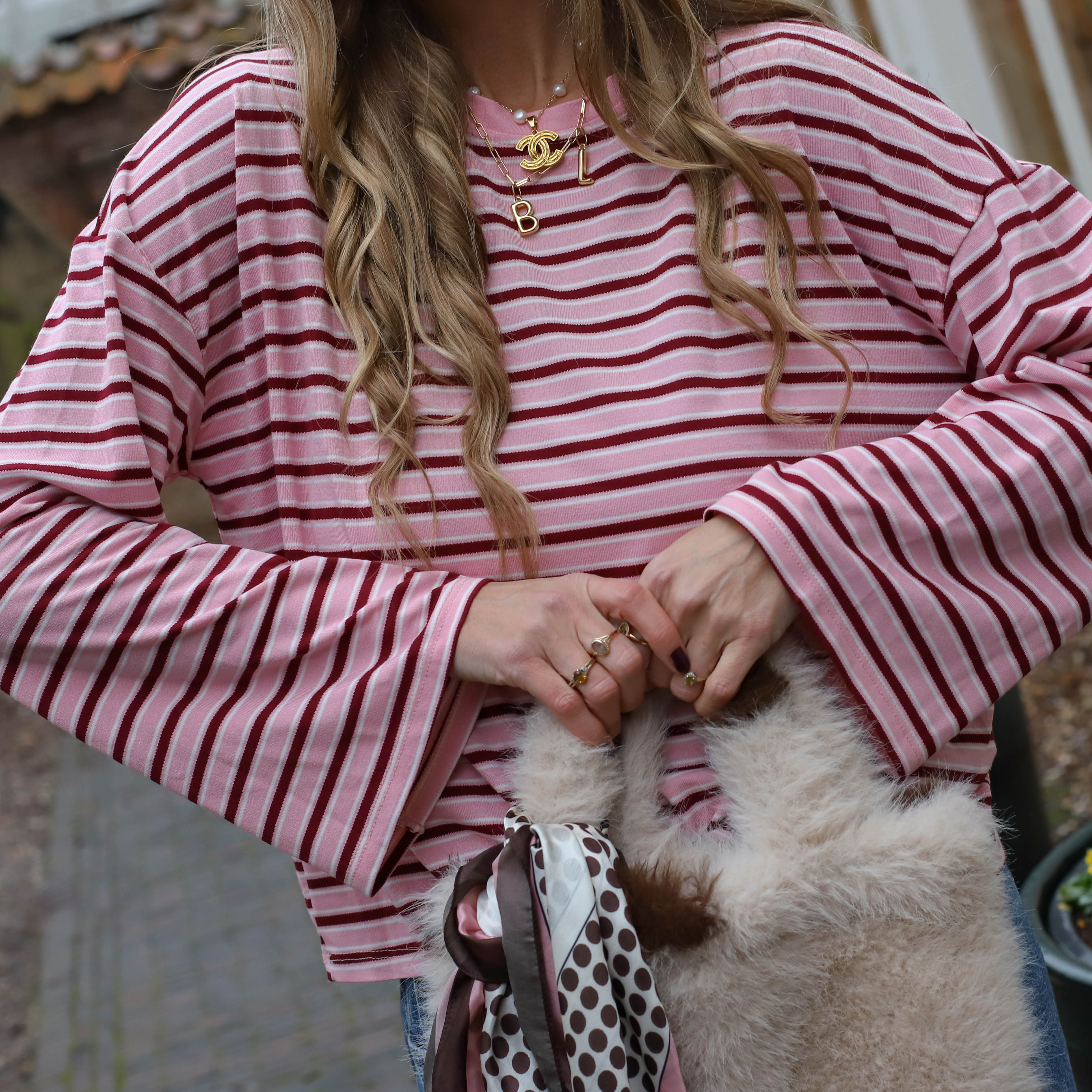 Lot streep top roze burgundy