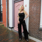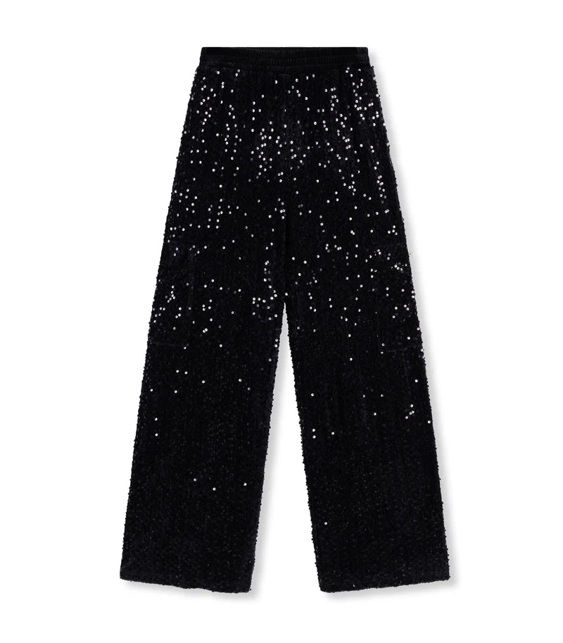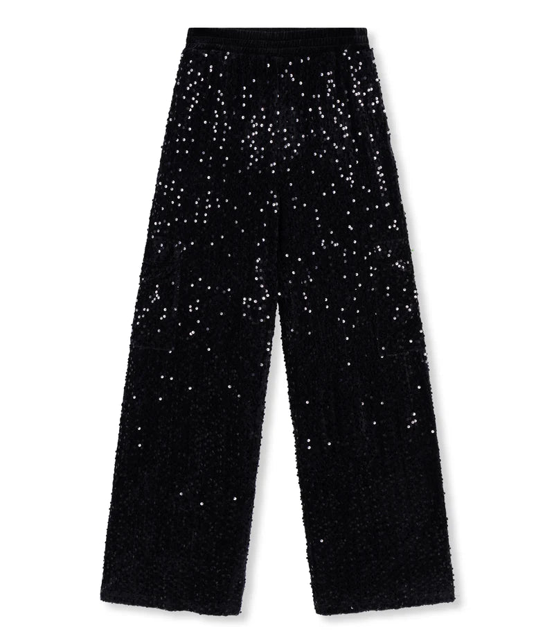Deze wide fit cargo pants zijn de perfecte balans tussen comfort en stijl. Gemaakt van een luxe sequined velvet stof, geven ze je outfit een glamoureuze twist. De elastische tailleband zorgt voor een perfecte pasvorm, terwijl de twee cargo zakken zowel praktisch als trendy zijn.