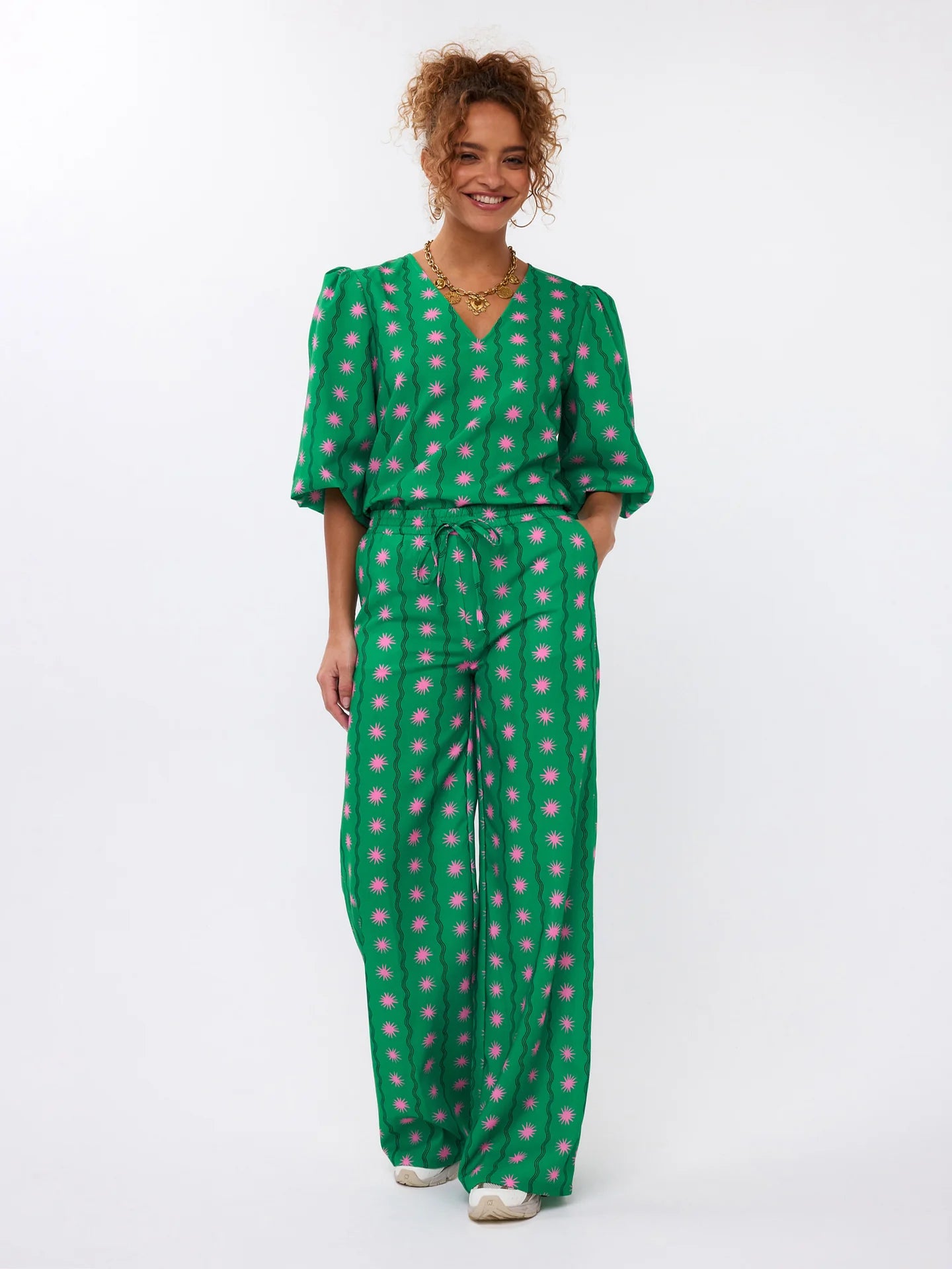 Pants Veerle is een comfortabele pantalon, de high waist broek heeft wijde, rechte pijpen, een elastische tailleband met trekkoord voor optimale comfort en steekzakken aan de voorzijde.