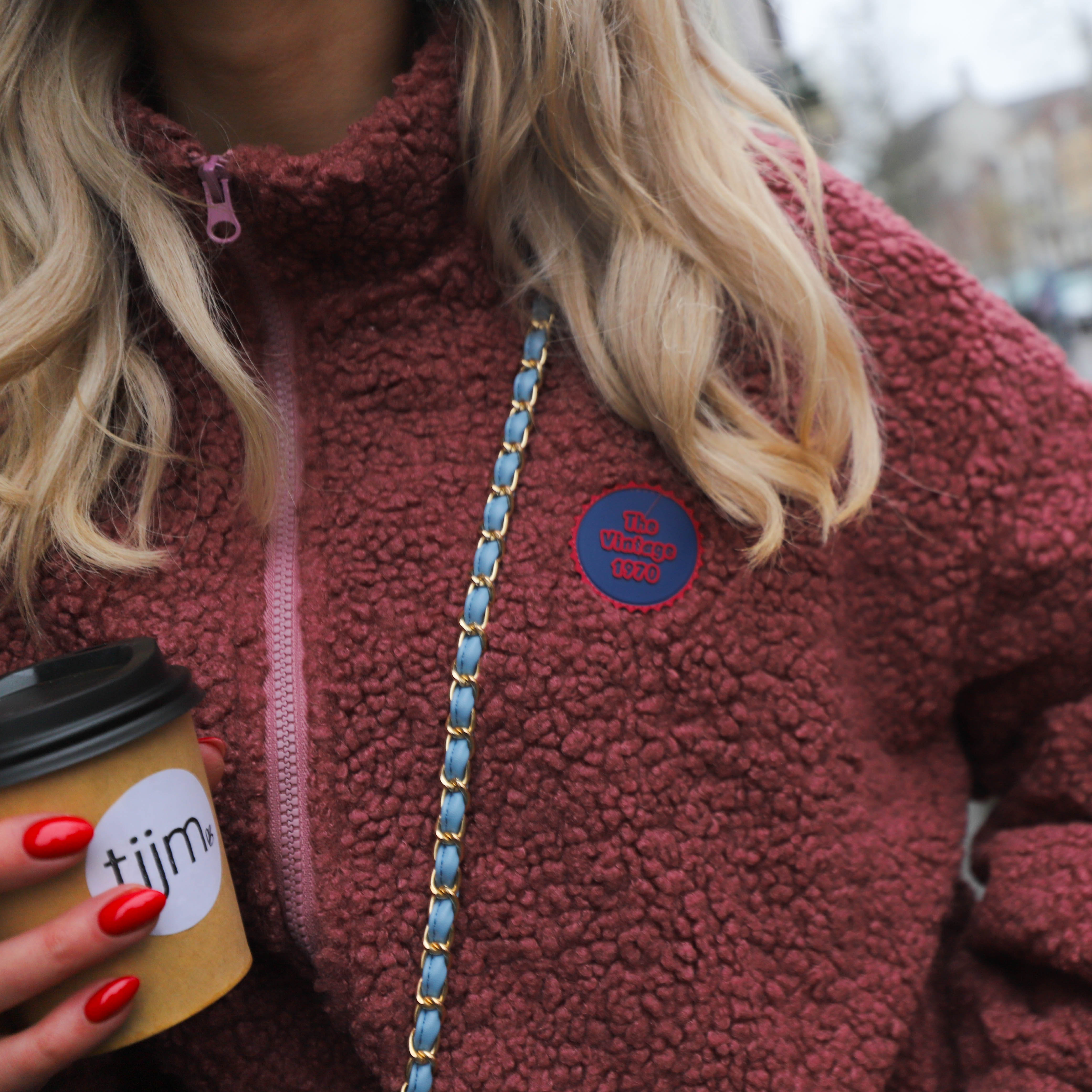Het jack heeft een ruime, oversized pasvorm, een hoge kraag en een doorlopende ritssluiting. De kleine, ronde 'Vintage' patch op de borst zorgt voor een subtiel, contrasterend accent.