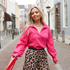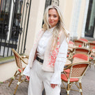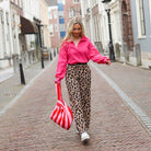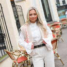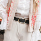 Mooie gevlochten riem met een witte rand. De riem heeft een grote ronde gesp en is leuk te combineren met een jurk of broek.