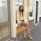 De Ballon Denim Skirt is een stijlvolle en veelzijdige rok met een speelse ballonpasvorm. Deze rok heeft een aansluitende tailleband met een elastische plooi en is afgewerkt met een lichte wassing. De zakken en de afwerking geven de rok een casual uitstraling.