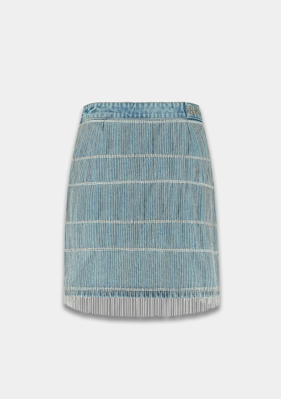 De DAZE skirt in LIGHT BLUE is een korte A-lijn rok met stevige denimlook. Met de zilveren fringes geven een twist aan de rok. Combineer met een NO DRAMA Tee of met het bijpassende MILLOW jack. A go-to piece for every season. Maatadvies, valt klein, bestel een maat groter.