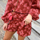 De EMILIA skirt is een soepelvallende maxi-rok met een elastische tailleband. De print combineert een diepe bessentint met subtiele grafische sterren. Perfect voor dagen waarop je comfort en flair zoekt. Easy elegance, print included.