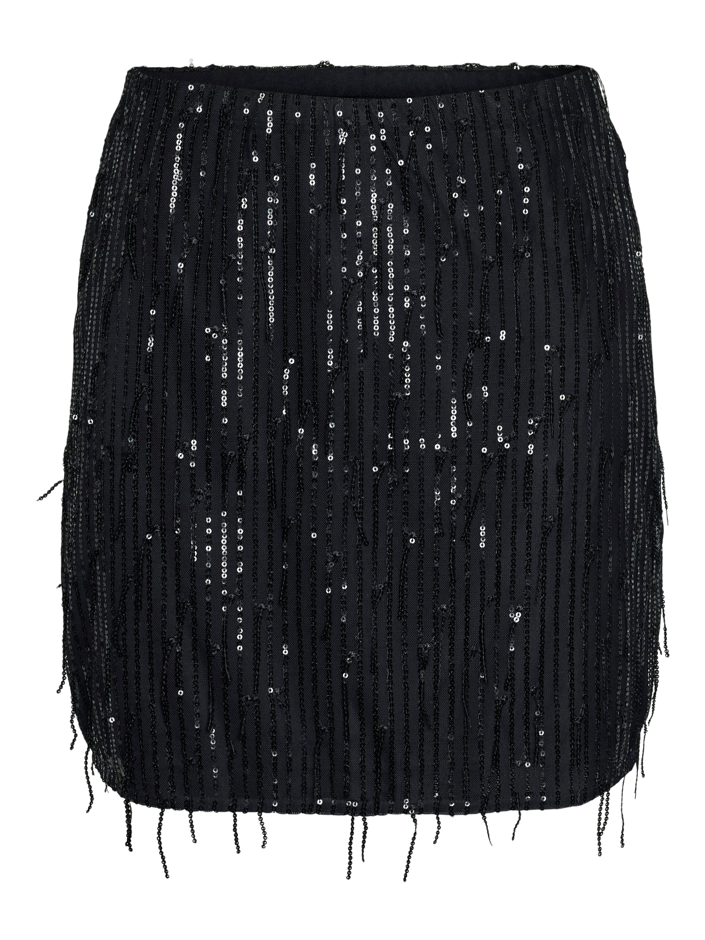 Mooie zwarte rok met pailletten en franjes. De rok is perfect voor naar een feestje en staat leuk met een pailletten top.