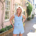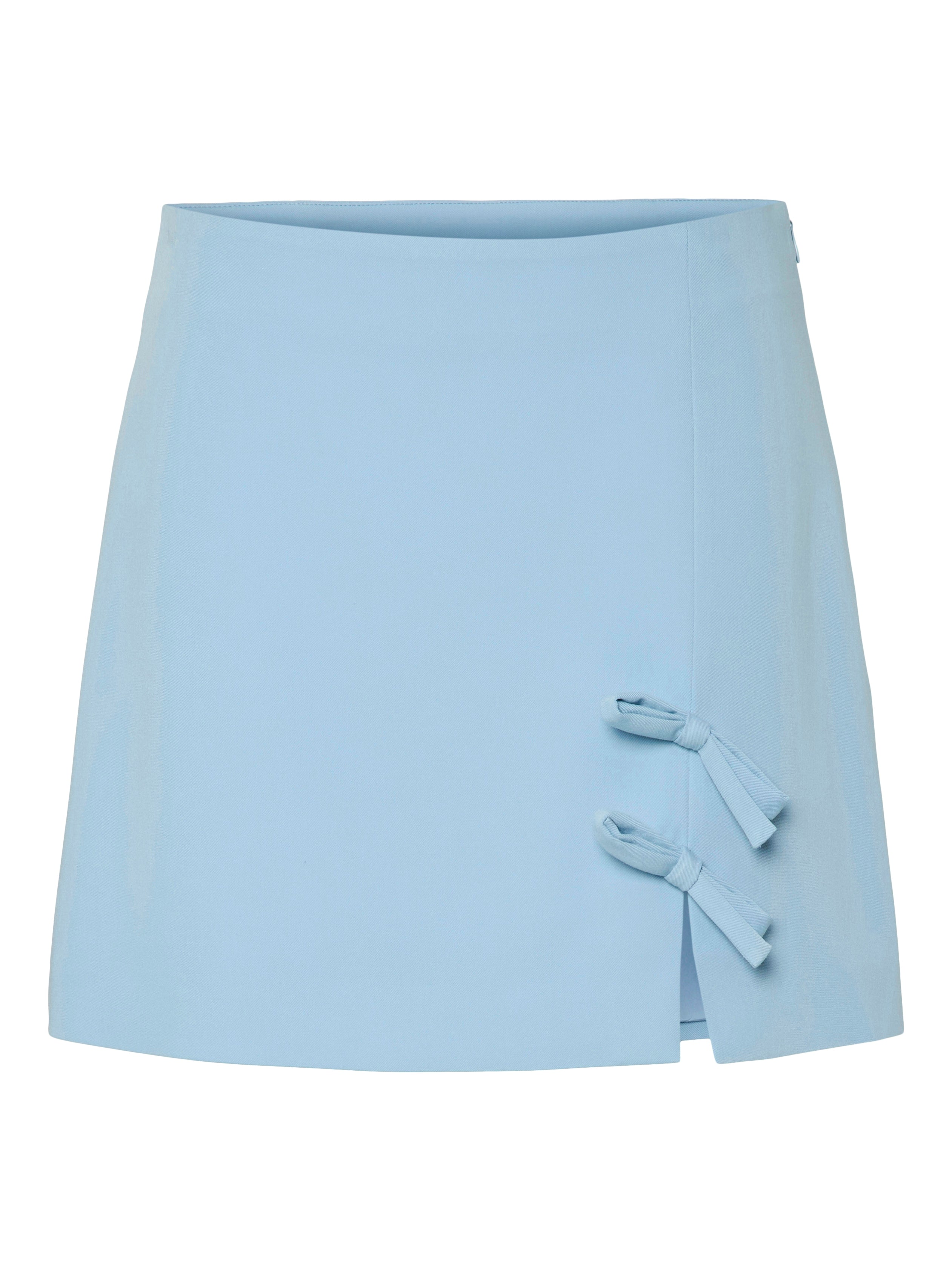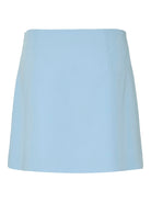 Deze trendy lichtblauwe mini-rok is een must-have voor je garderobe. De rok heeft een subtiel detail aan de zijkant, wat zorgt voor een speelse touch. De soepele stof draagt comfortabel en valt mooi. Combineer hem met je favoriete tops en schoenen voor een stijlvolle look.