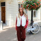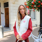 Dit zachte, ecru gilet is een heerlijke toevoeging aan elke outfit. De teddy-achtige stof en de knoopsluiting aan de voorkant geven het een knusse uitstraling. Het gilet is afgewerkt met een schattig hartjes-embleem met de tekst "LOVE YOUR INSIDES", wat het kledingstuk een vrolijke en positieve boodschap meegeeft. Perfect om over een basic top of blouse te dragen.