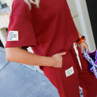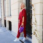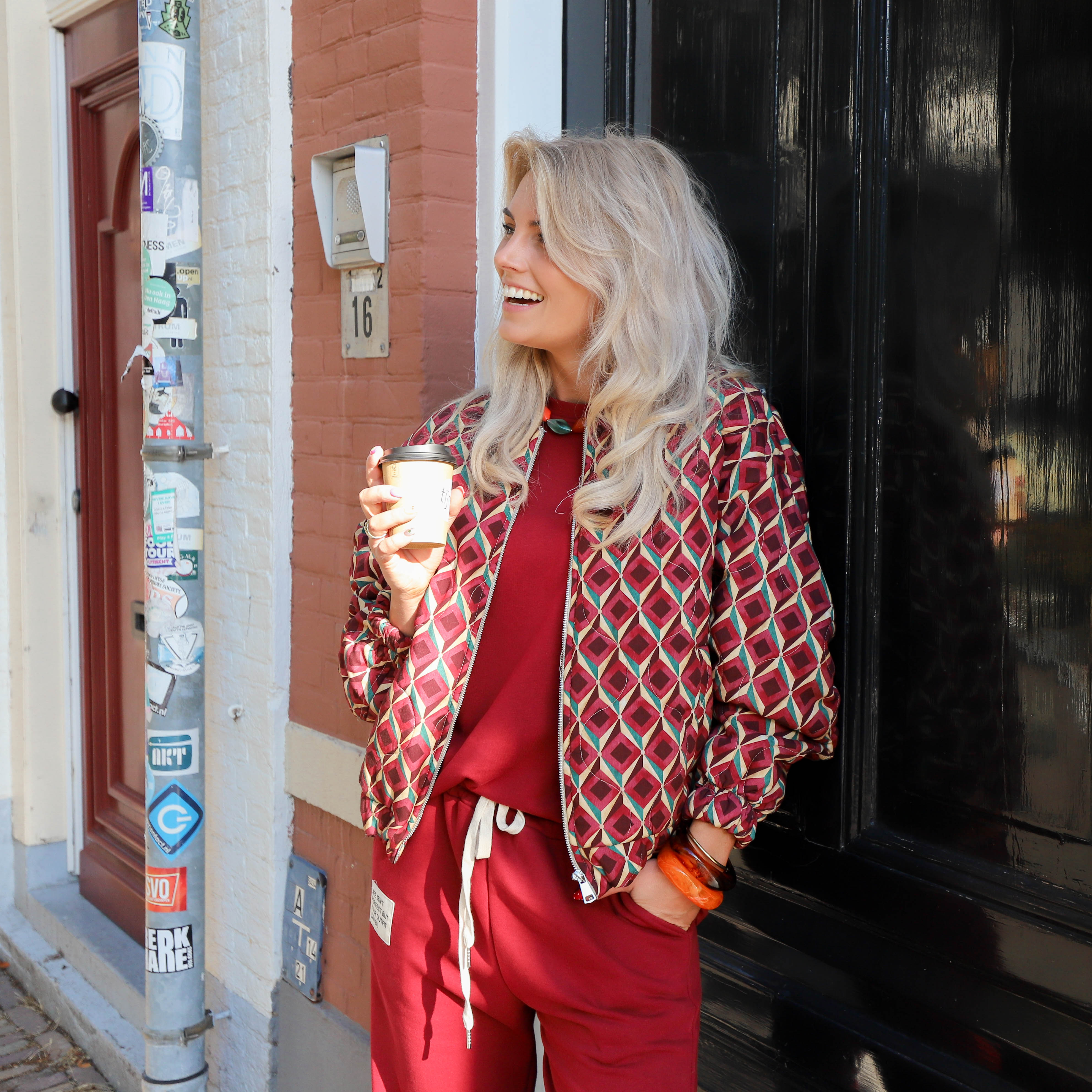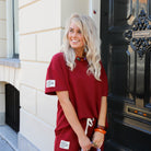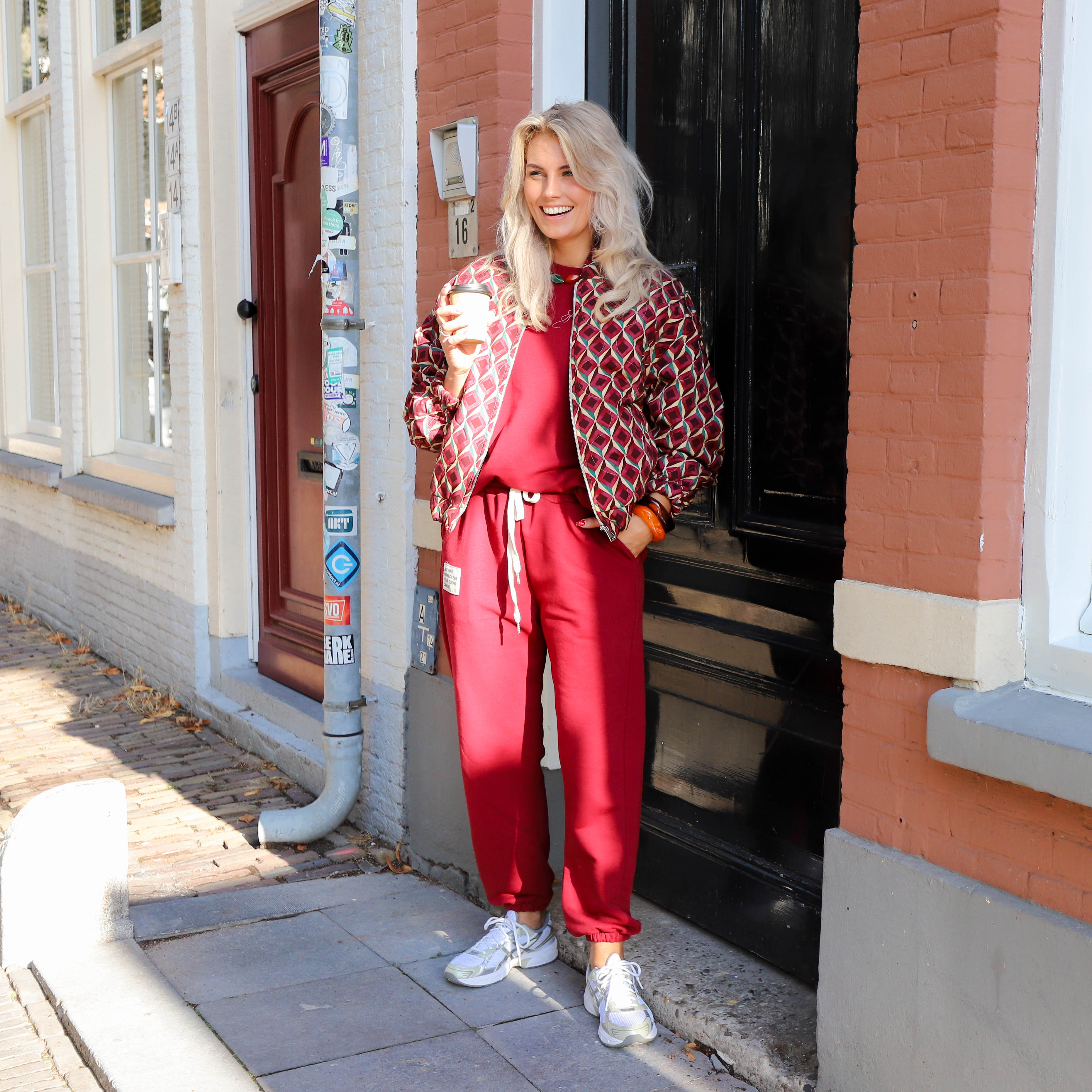 Creëer een comfortabele en stijlvolle look met onze joggingset patch in de opvallende kleur Burgundy. De set bestaat uit een oversized T-shirt en een bijpassende joggingbroek.