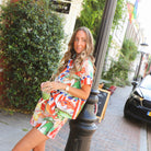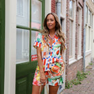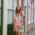 Dit leuke setje bestaat uit een overhemd met korte mouwen en een bijpassende short. De all-over print in felle kleuren geeft de set een vrolijke uitstraling. Het short heeft een elastische tailleband met een trekkoord voor een comfortabele pasvorm. Maak het af met een leuke ketting!