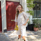 Mooie lange lichtbeige short. Het shortje zit heerlijk en staat leuk met een blouse of top.