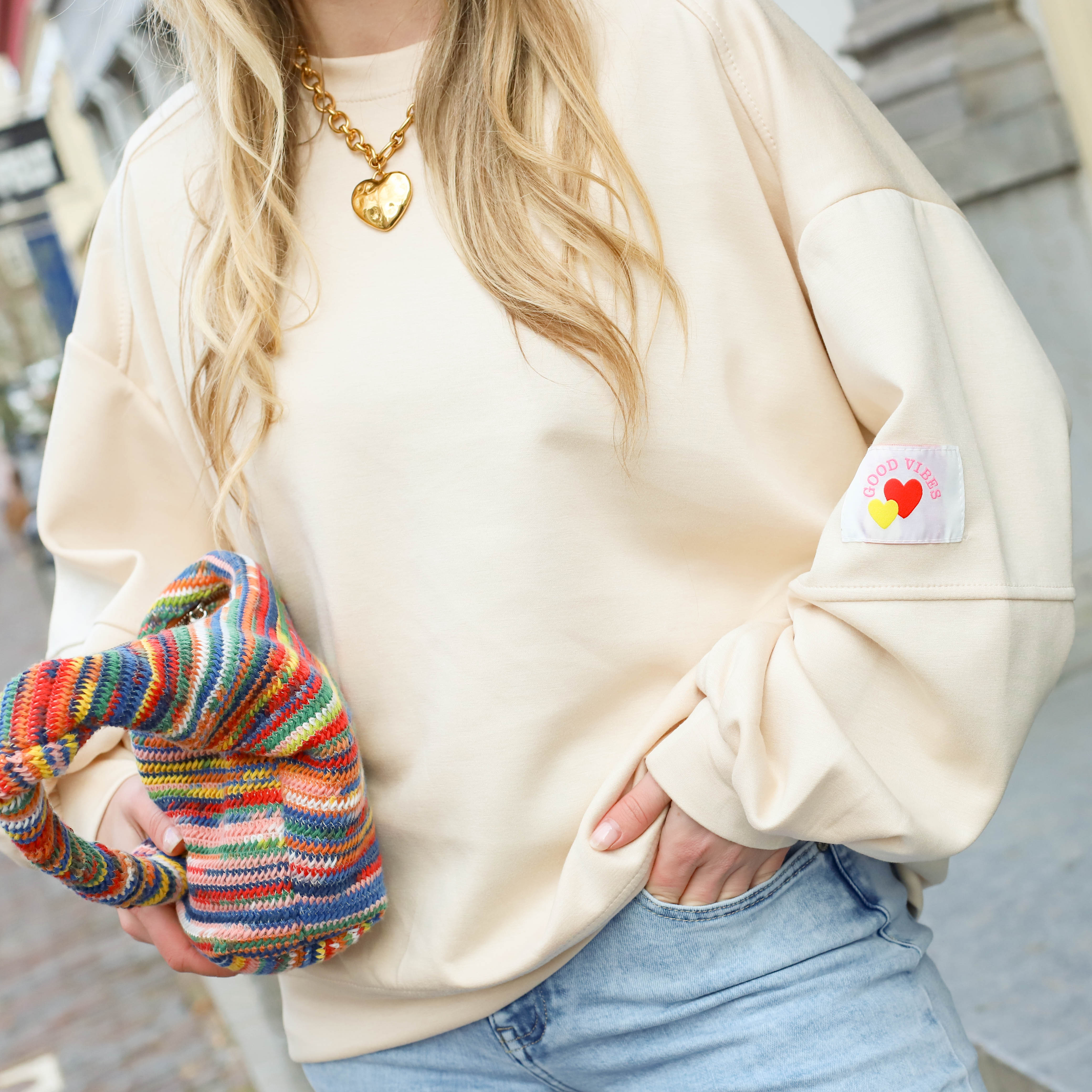 Oversized sweater good vibes beige