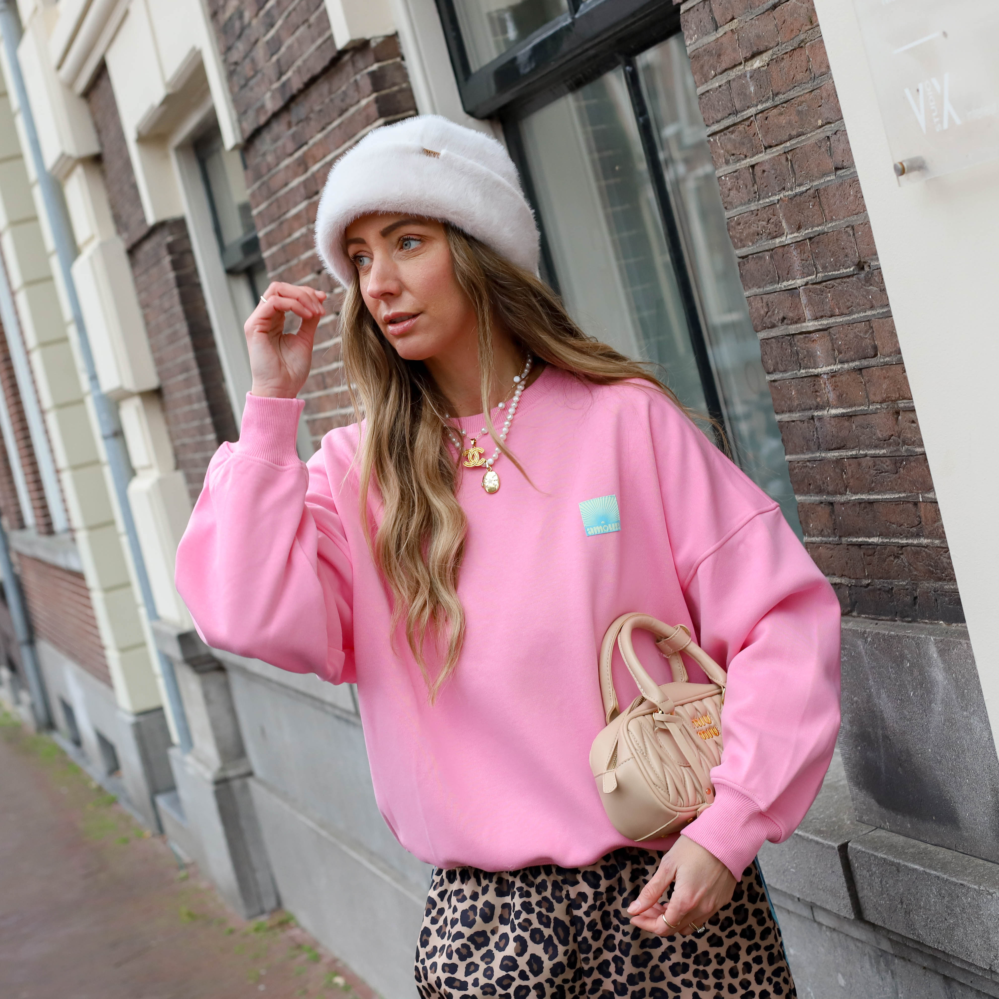 Leopard Lisa sweater oranje roze