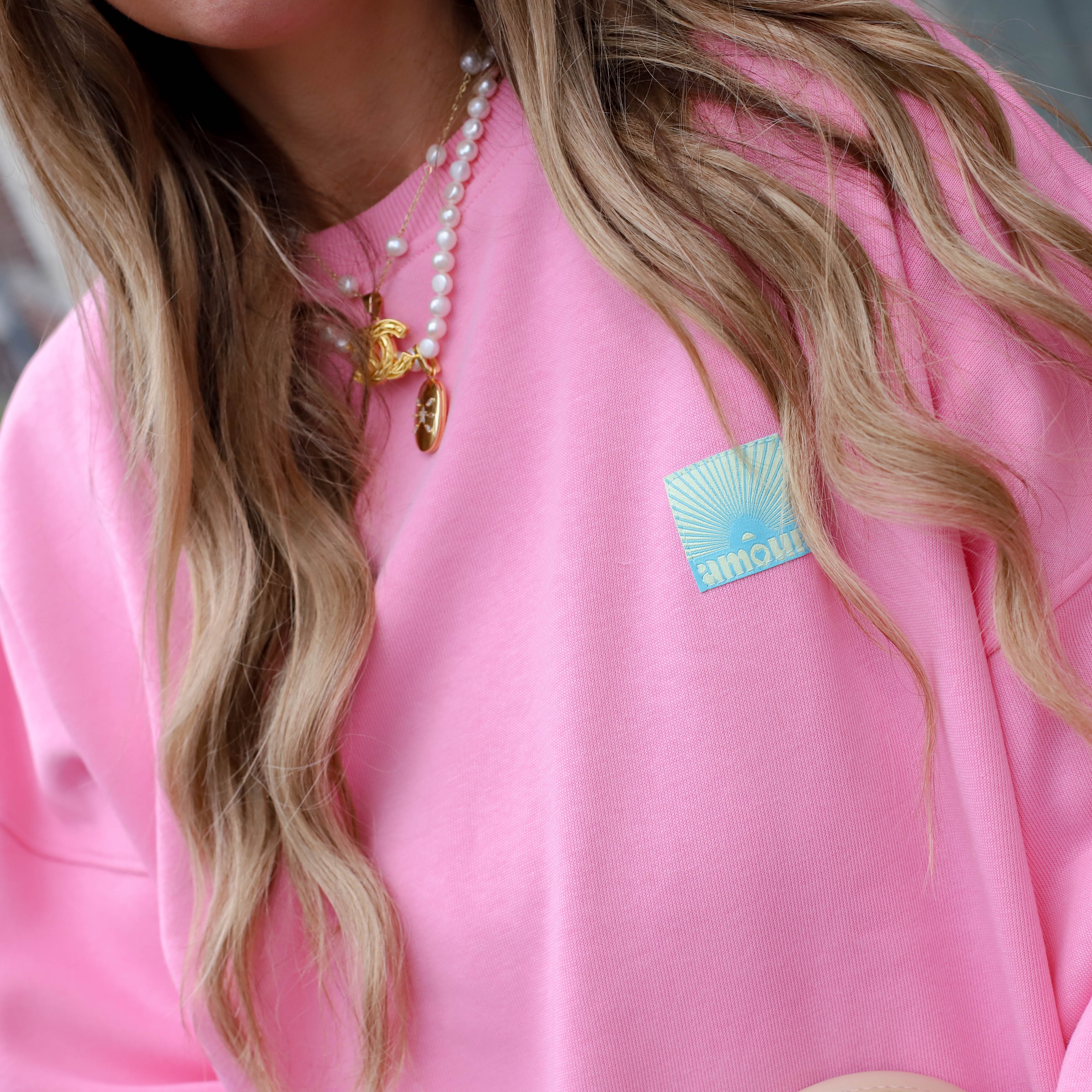 Patch sweater roze