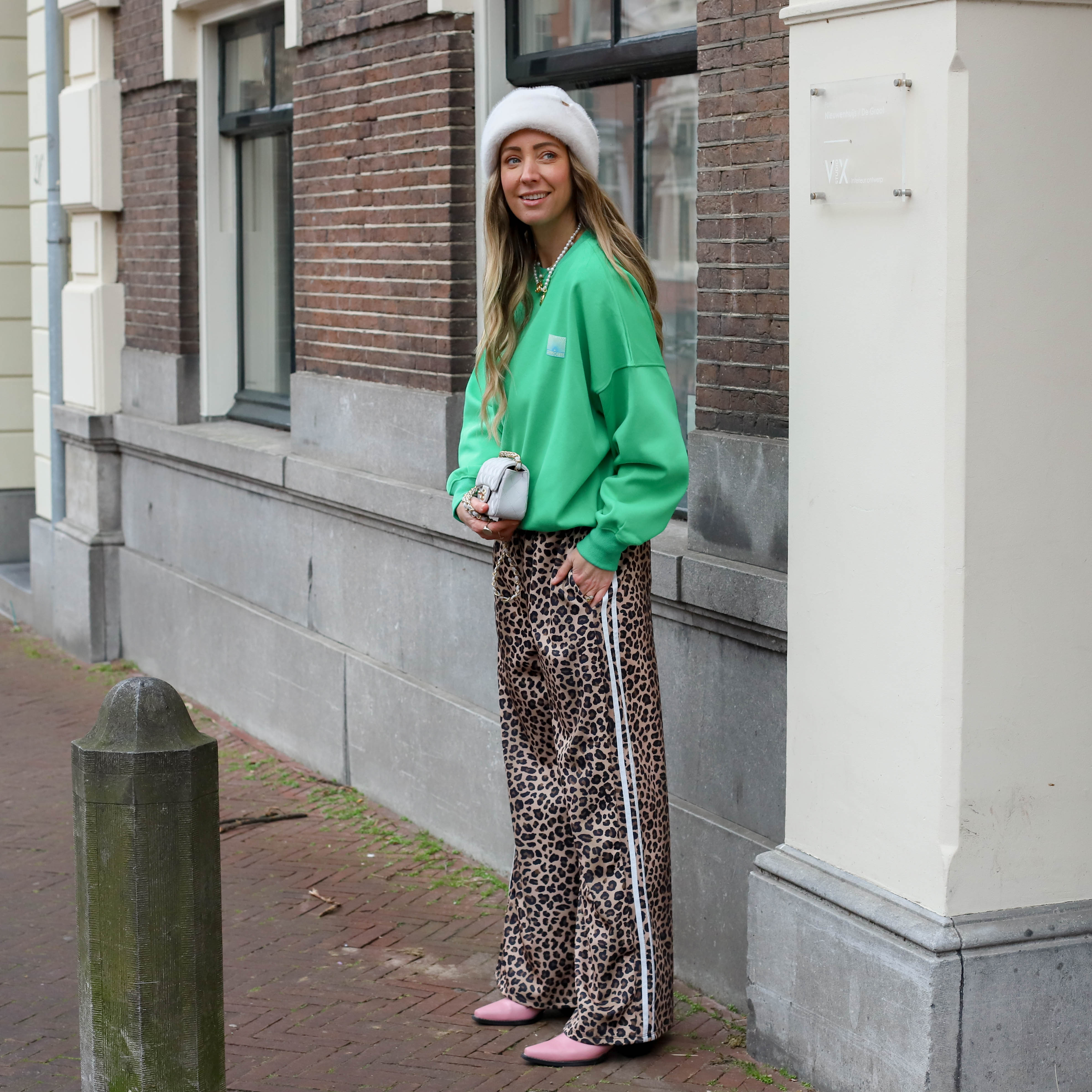 Leopard Lisa sweater ecru fuchsia oranje