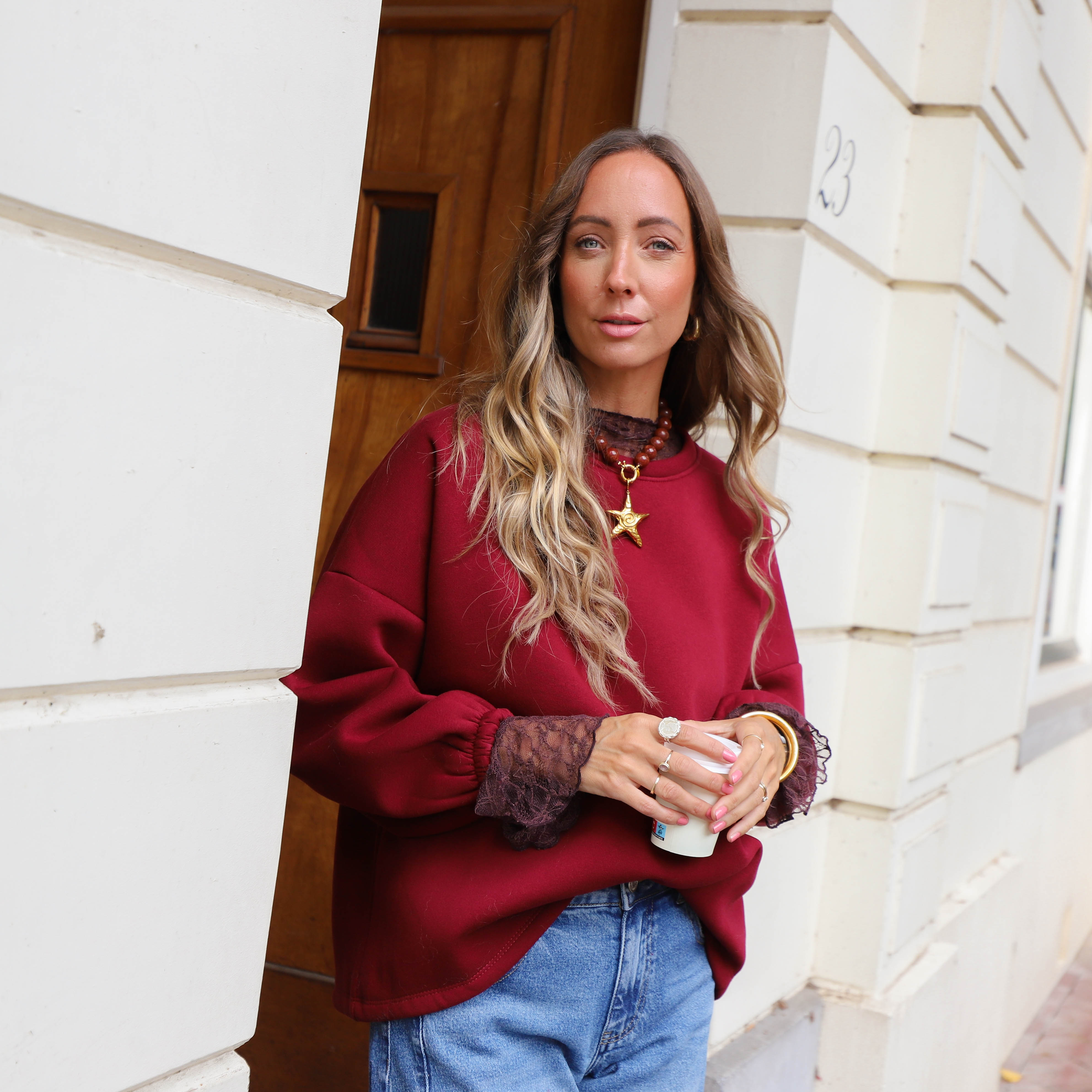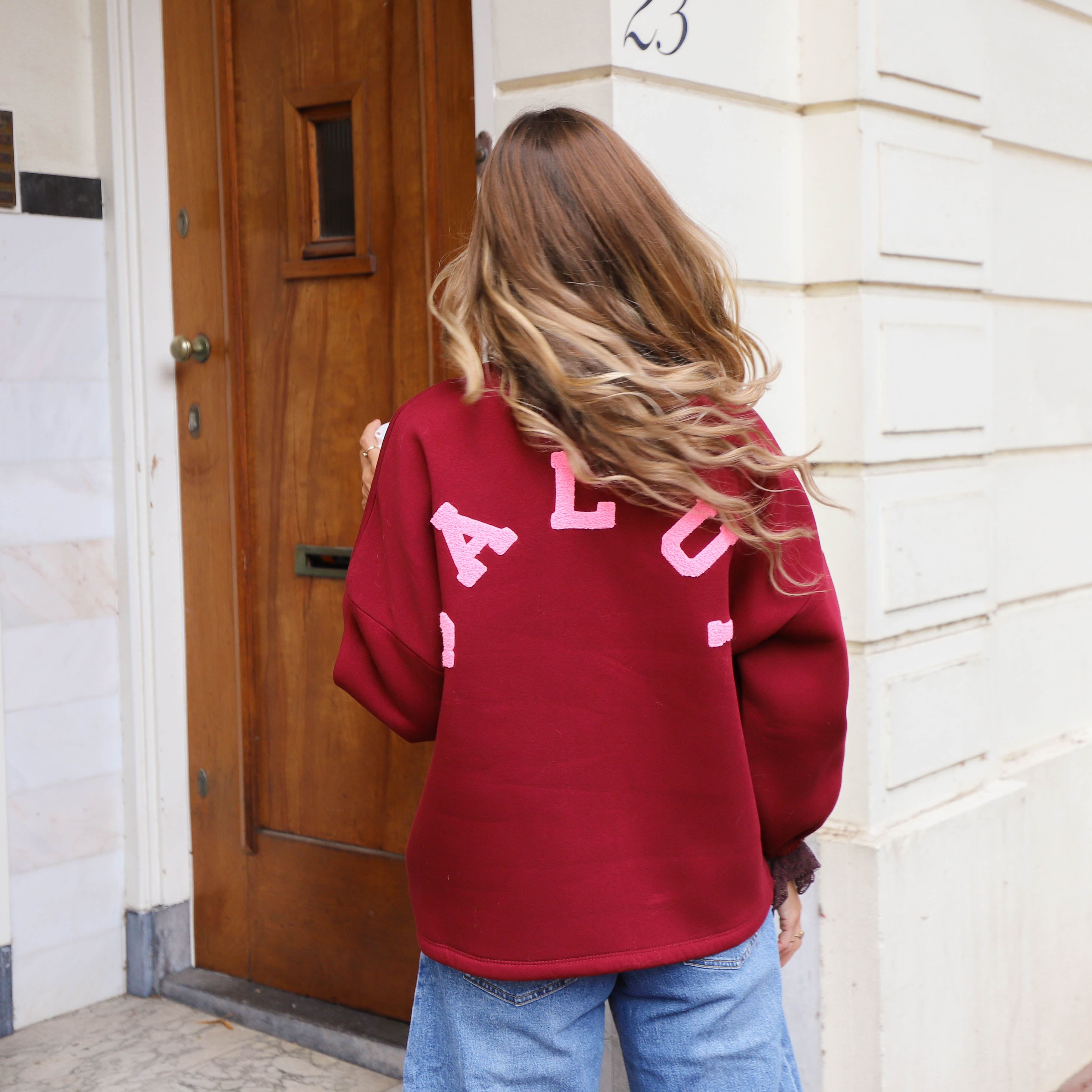 Geef je outfit een comfortabele en stoere twist met deze leuke sweater. Deze sweater heeft een klassieke ronde hals. De sweater heeft een ruime, comfortabele pasvorm en is op de achterkant voorzien van de tekst 'SALUT' in een zacht, roze teddy materiaal.
