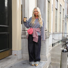 De top heeft een ruime, oversized pasvorm, een ronde hals en lange mouwen.