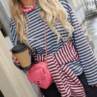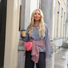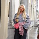 Deze Wave Streep Top is een comfy en unieke basic voor je dagelijkse look. De top is gemaakt van een zachte, soepele stof en heeft een opvallend horizontaal golf-streepdessin in diverse contrasterende kleuren.