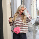 Deze Wave Streep Top is een comfy en unieke basic voor je dagelijkse look. De top is gemaakt van een zachte, soepele stof en heeft een opvallend horizontaal golf-streepdessin in diverse contrasterende kleuren.