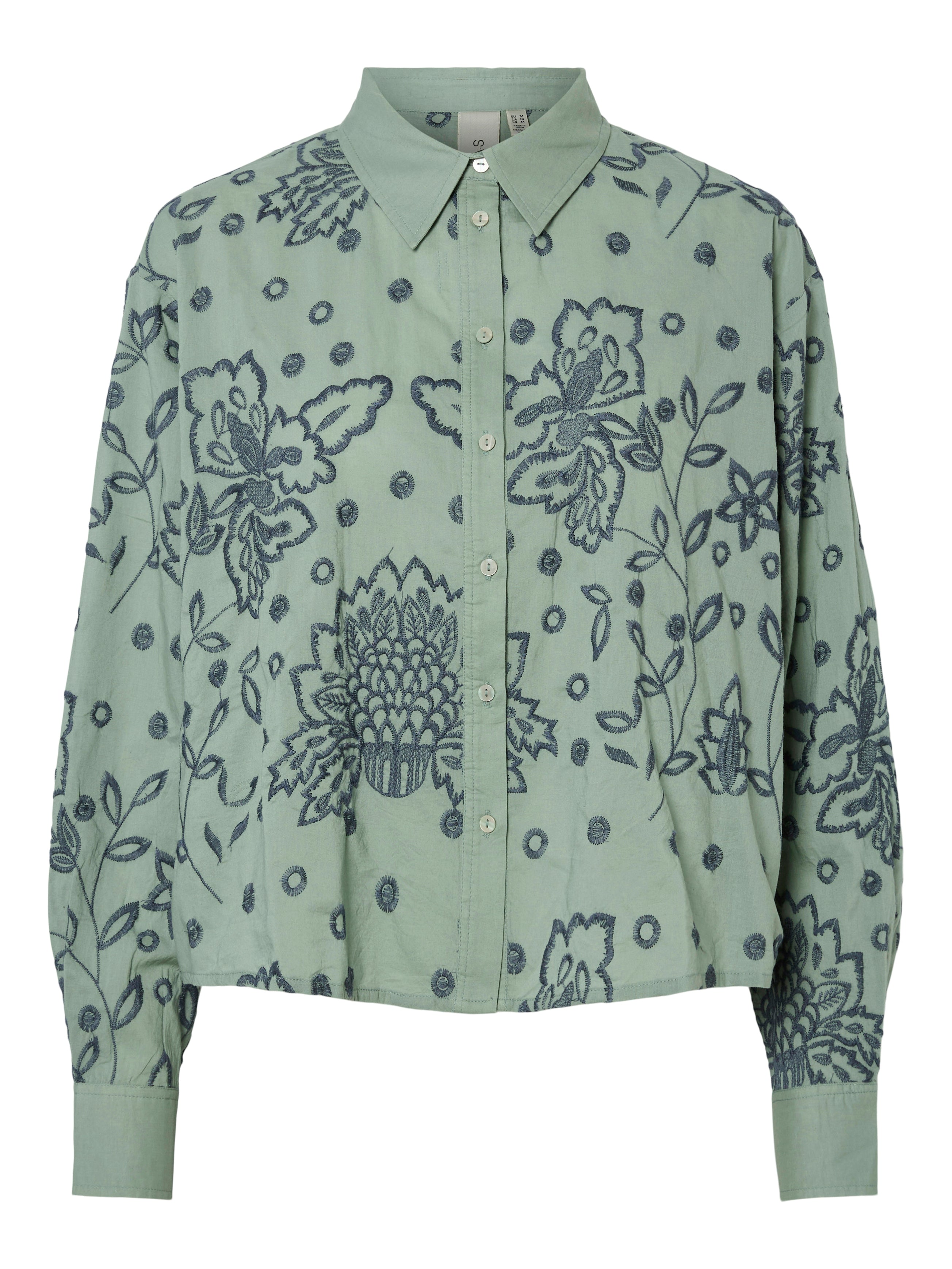 De YASRIMIS blouse is een stijlvol en comfortabel overhemd met een unieke print. Dit overhemd is uitgevoerd in een zachte, lichtgroene tint en voorzien van een prachtig bloemmotief in grijze en blauwe tinten, wat een subtiele, maar opvallende look creëert. De shirt heeft een klassieke overhemdkraag en lange mouwen, waardoor het perfect is voor zowel casual als formele gelegenheden. Combineer dit overhemd met een strakke broek of rok voor een elegante look, of draag het open over een T-shirt voor een meer casual uitstraling.