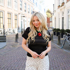- Ons model is 1.69 m en draagt maat M