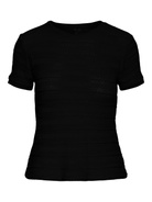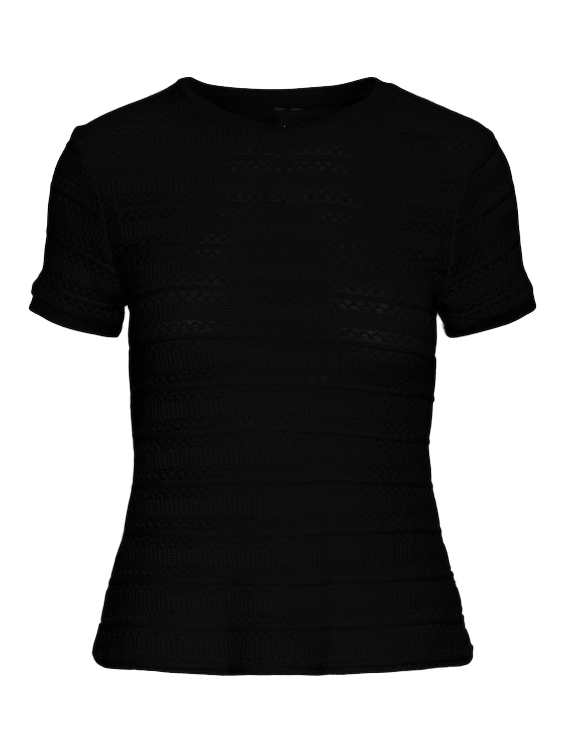 Geef je look een edgy touch met deze zwarte, gehaakte top met korte mouwen. De open structuur zorgt voor een speels effect en maakt de top perfect om over eenBasic top te dragen.