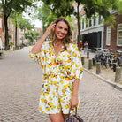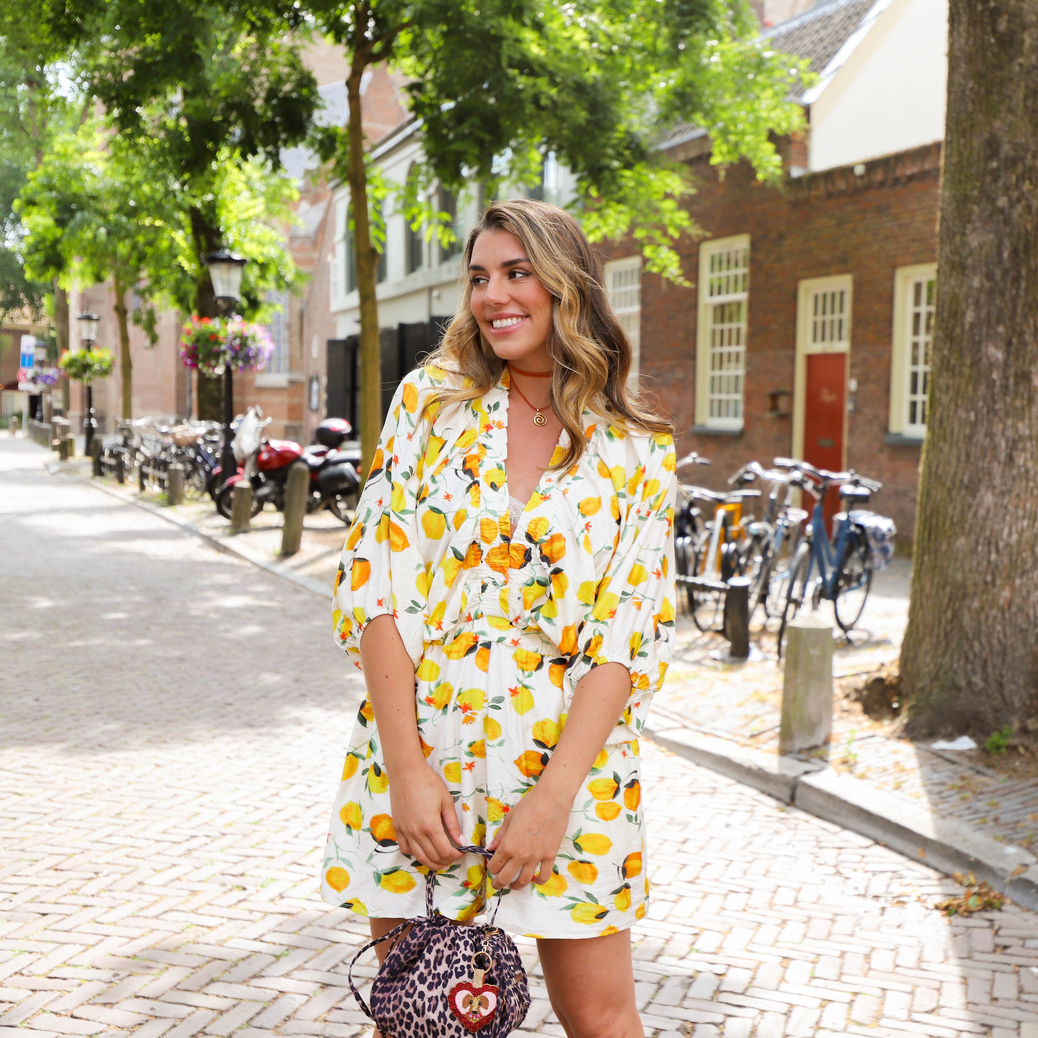 De playsuit heeft een vrolijke print met citroenen en zit heerlijk. Leuk voor naar een festival of naar het strand.