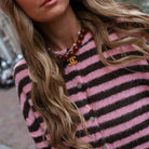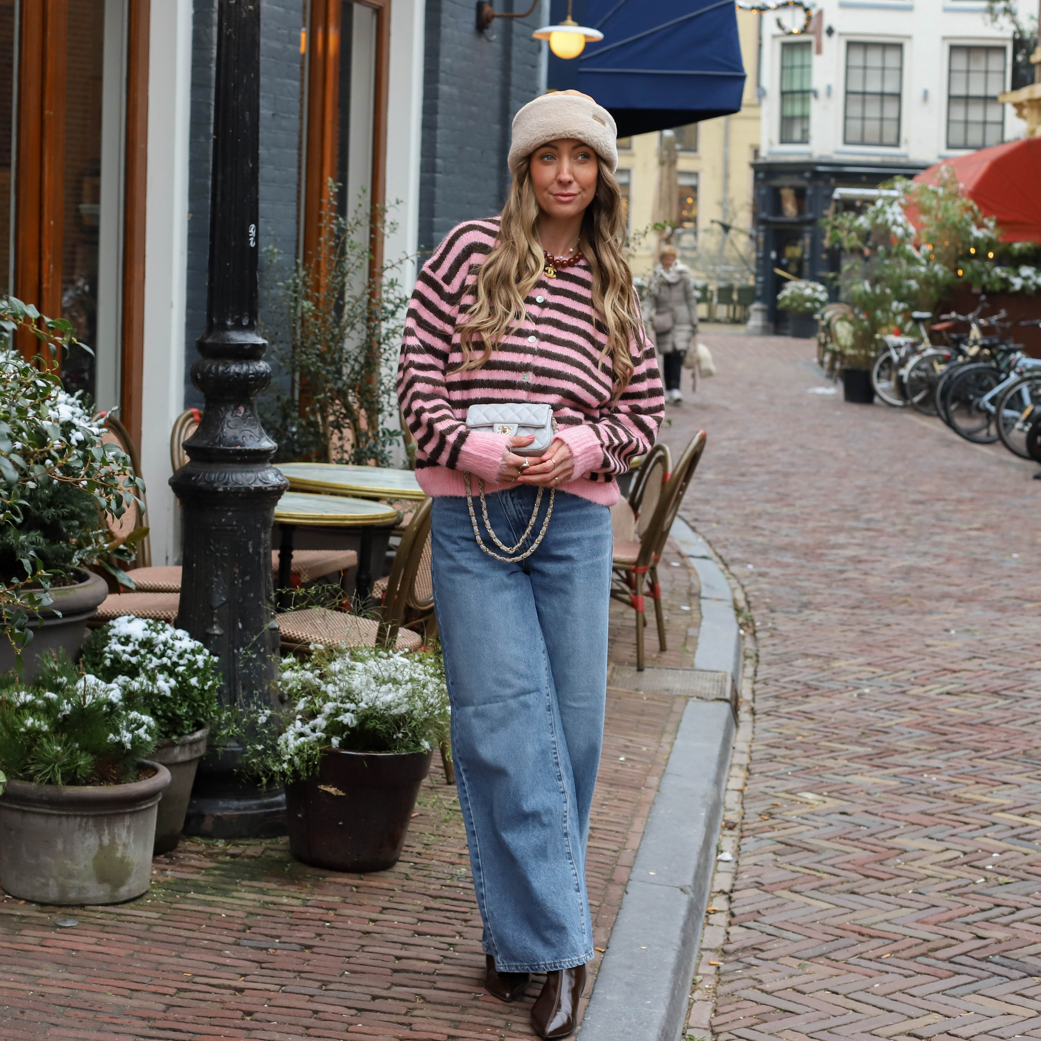 Het vest heeft een heerlijk zachte, fluffy textuur en valt direct op door het klassieke streeppatroon en de elegante knoopsluiting. Dankzij de relaxte fit en de fijne wolmix zit dit item niet alleen mega comfy, maar geeft het je outfit ook direct die gewilde on-trend vibe. Ideaal om te layeren over een basic top of te stylen met je favoriete baggy jeans voor een moeiteloze streetwear look.