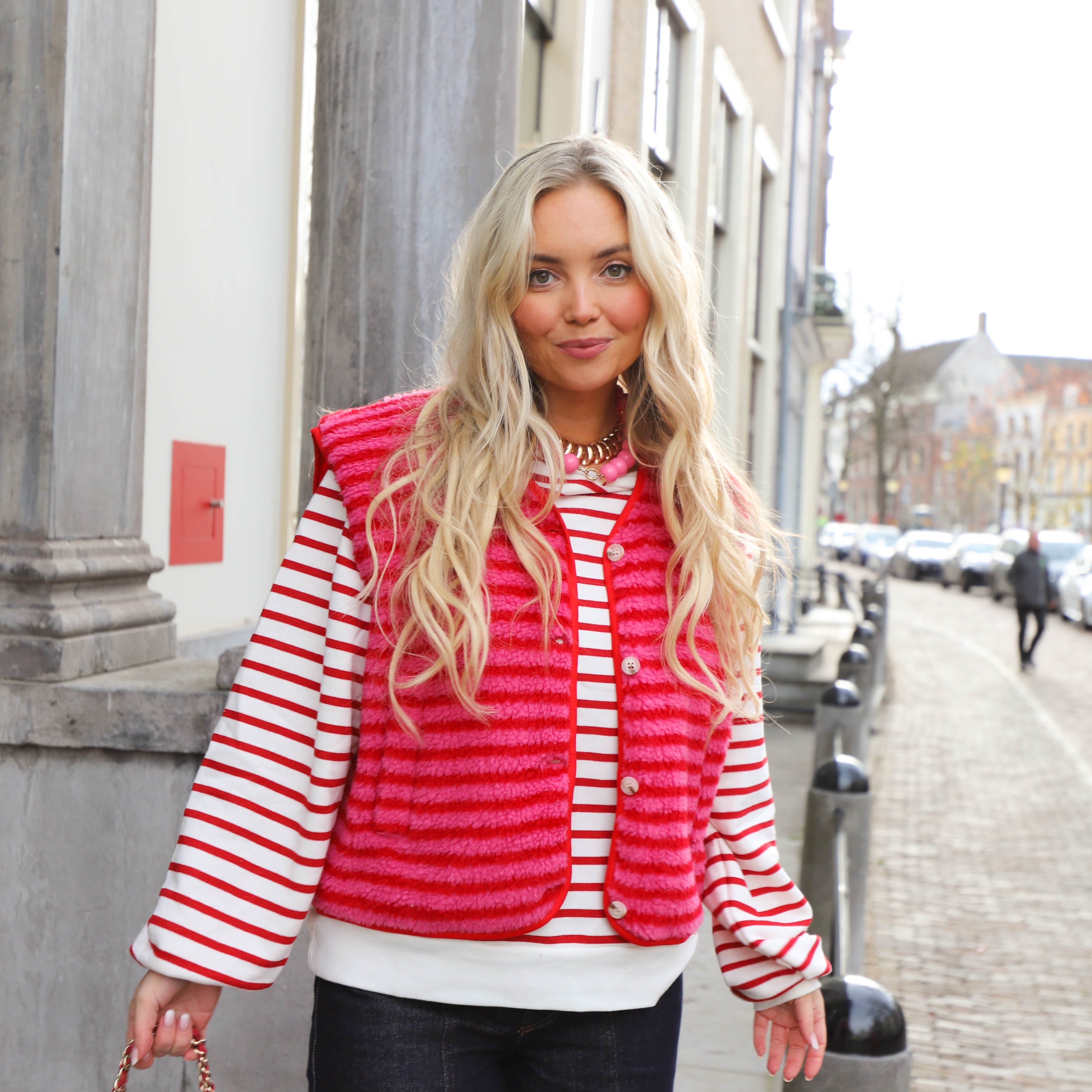 Deze NMELBA LS Stripe Sweat van Noisy May is een comfy en chique toevoeging aan je casual collectie, met een knipoog naar de Franse stijl. De sweater is gemaakt van zachte sweatstof en heeft een klassiek horizontaal streepdessin in rood en wit.
