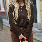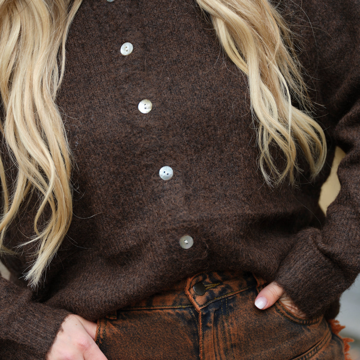 Geef je outfit een zachte, romantische touch met ons 'Fleur vest' in een chocoladekleur. Dit vest heeft een ronde hals en een knoopsluiting met kleine, subtiele knoopjes aan de voorkant. De harige, zachte stof maakt dit vest comfortabel en warm, perfect voor de koudere dagen. De lichte kleur is eenvoudig te combineren met andere items.