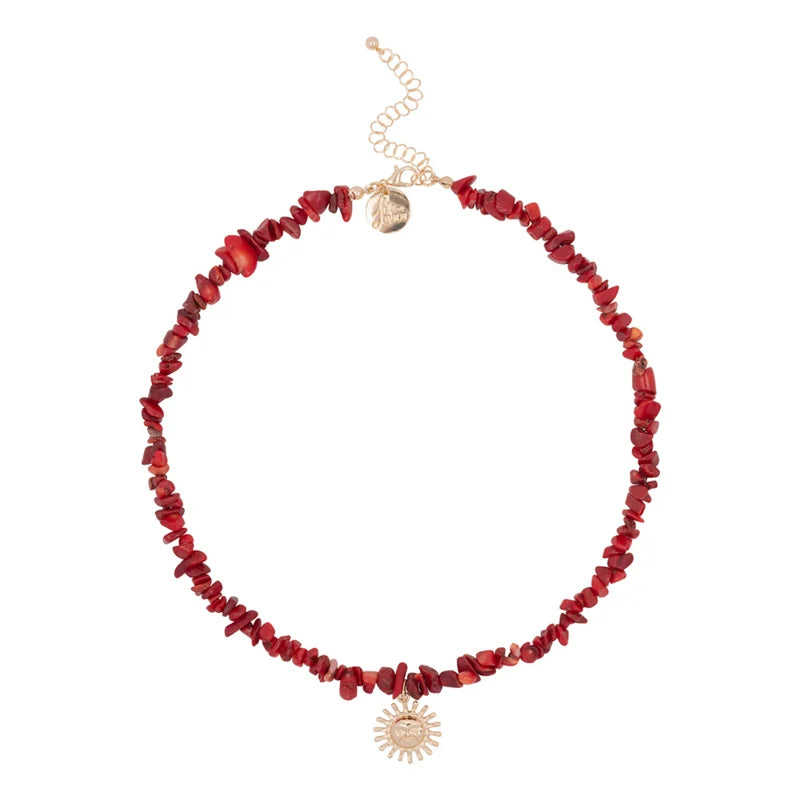 Deze ketting straalt power en vrolijkheid uit! Gemaakt van volledig rode, natuurlijke steentjes – warm, levendig en vol karakter.