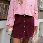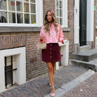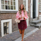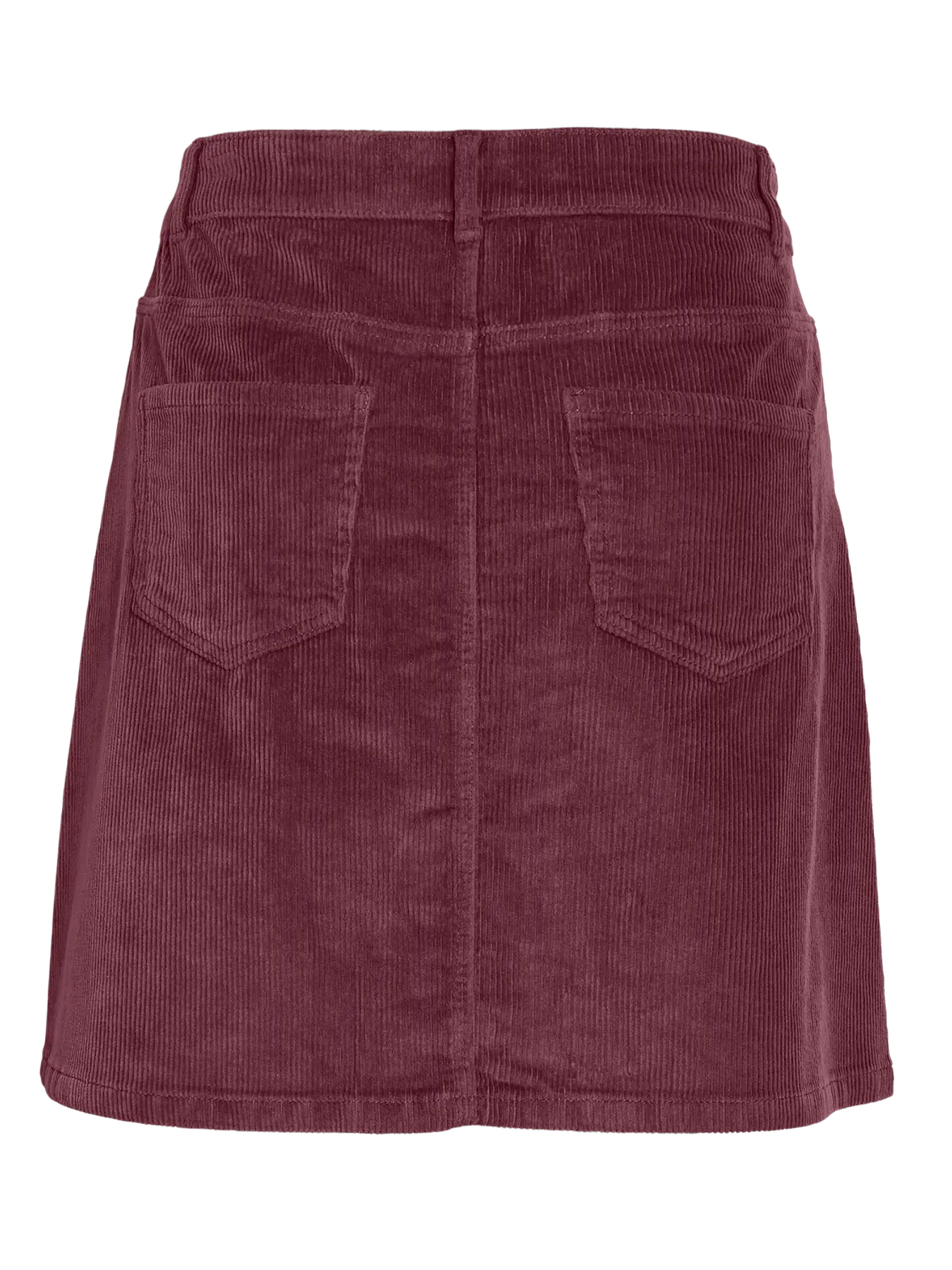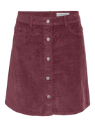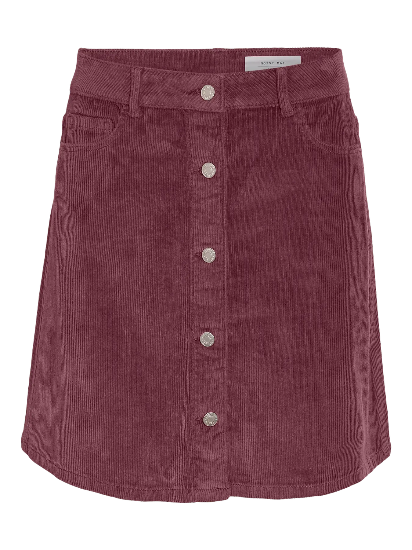 Deze Noisy May Ronnie A-shape rok is een klassieker met een moderne twist. Gemaakt van zacht corduroy in een diepe bordeauxrode kleur, combineert de rok stijl met comfort. Het A-lijn model en de knoopsluiting aan de voorkant geven de rok een flatterende pasvorm. Perfect voor een casual of meer geklede look.
