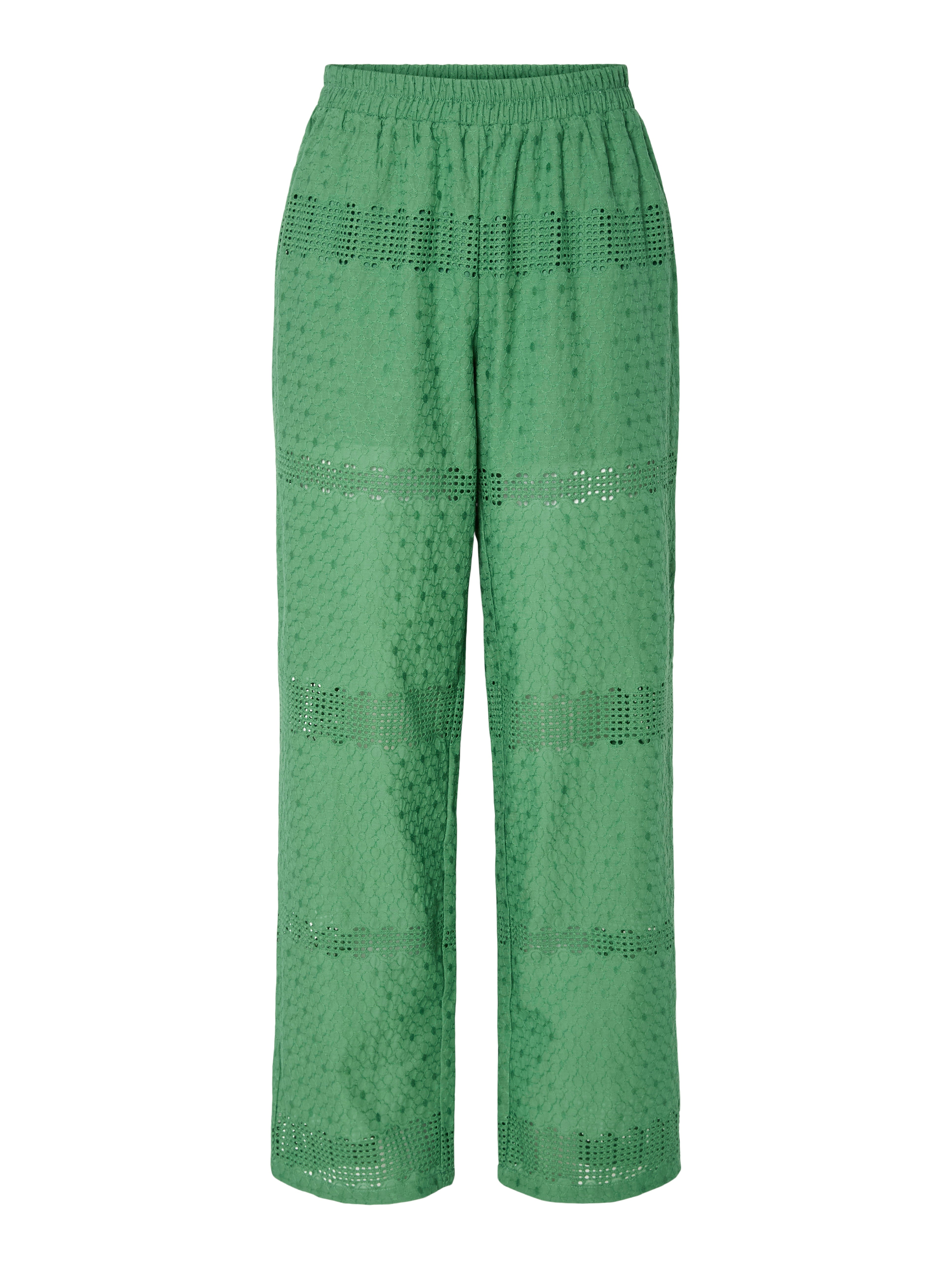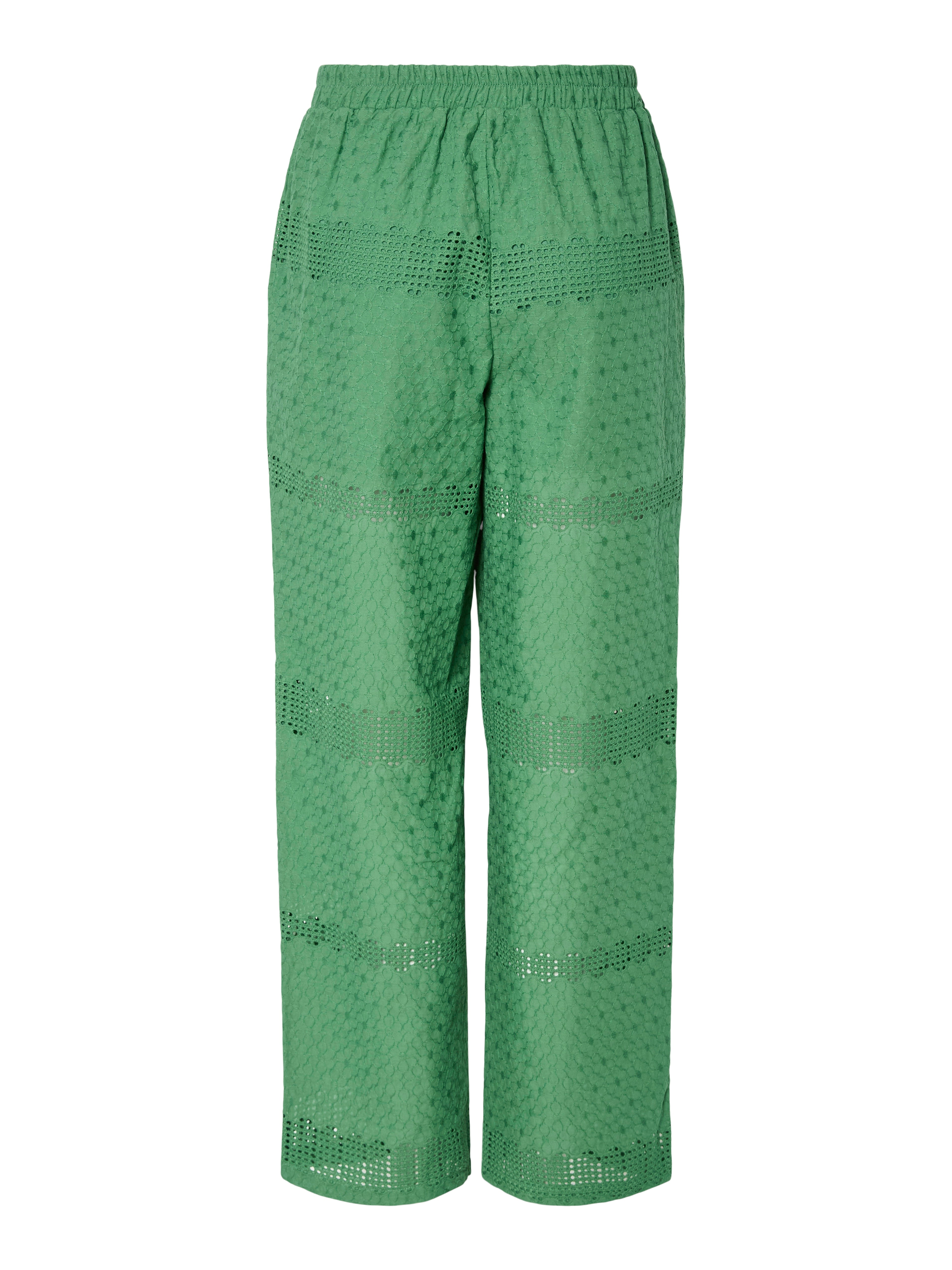 Mooie lange broek in het groen. De broek heeft een hoge taille en staat leuk met de bijpassende top.