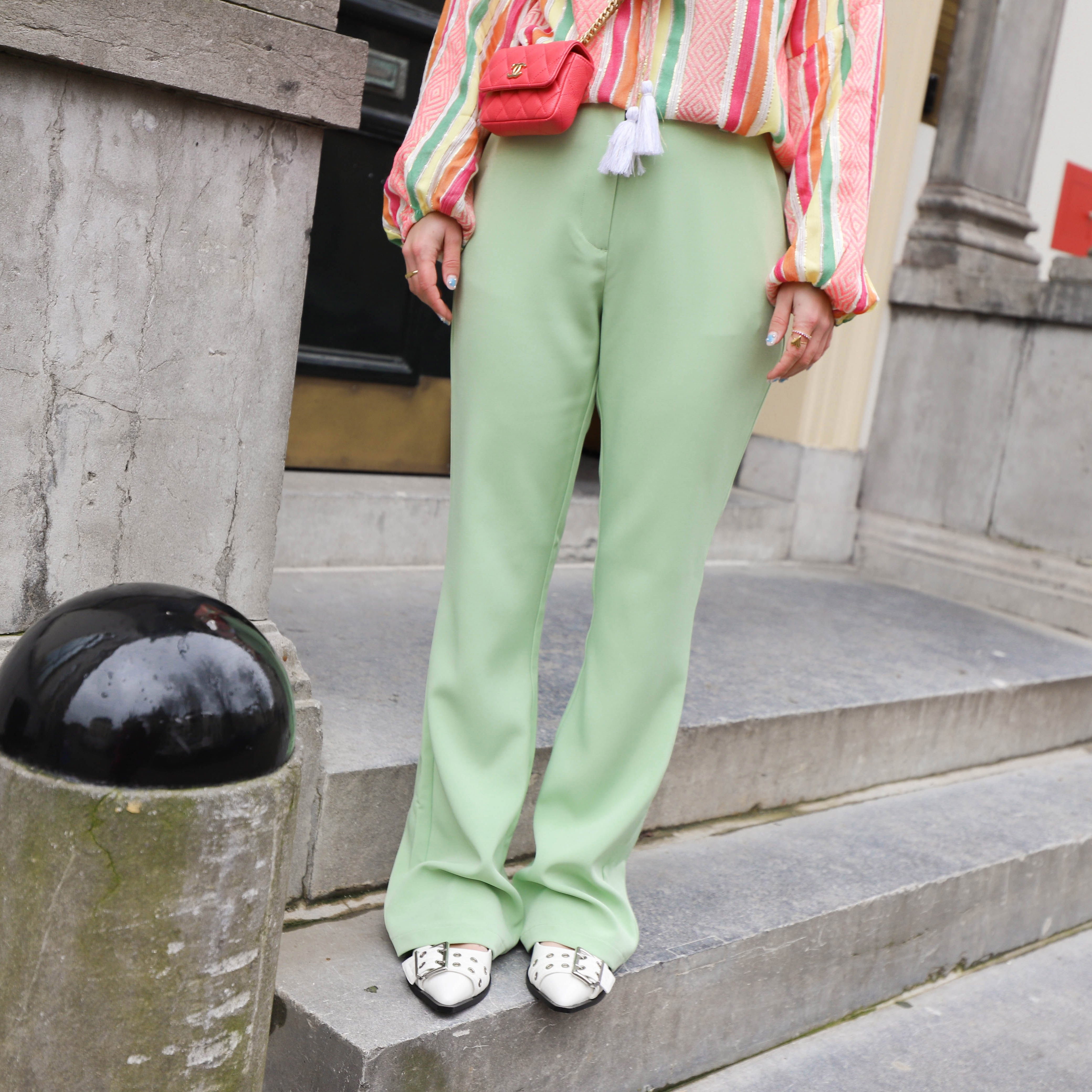 Mooie flared pantalon van YAS. De pantalon heeft een mooie lichtgroene kleur en een hoge taille. Leuk met een blouse of top.