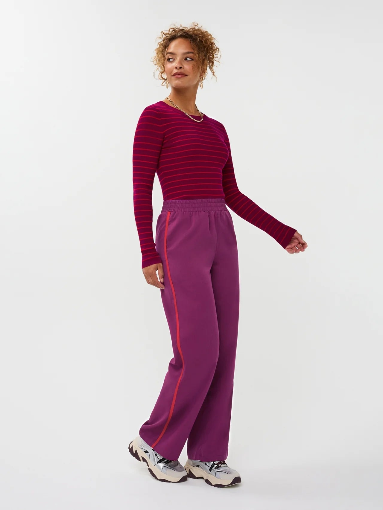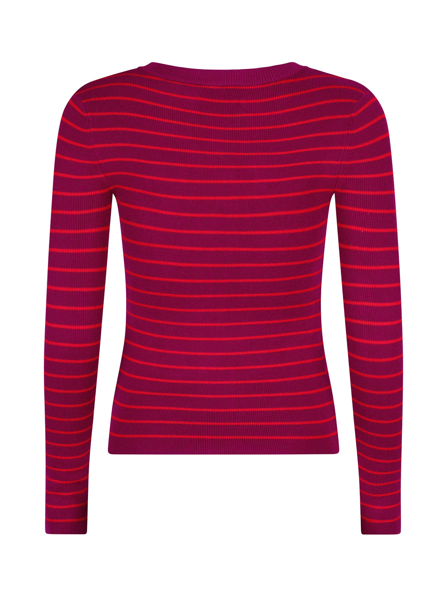 Knitted top Devina is een klassieke basic met een speelse twist. Deze fijngebreide top heeft een aansluitende pasvorm en is voorzien van een subtiel gestreept patroon. De ronde hals en lange mouwen zorgen voor een tijdloos silhouet, terwijl de stretchy stof zorgt voor ultiem draagcomfort. Perfect om zowel casual als chic te stylen. De totale lengte van knitted top Devina is 56,5 cm met een mouwlengte van 62 cm bij een maat S.