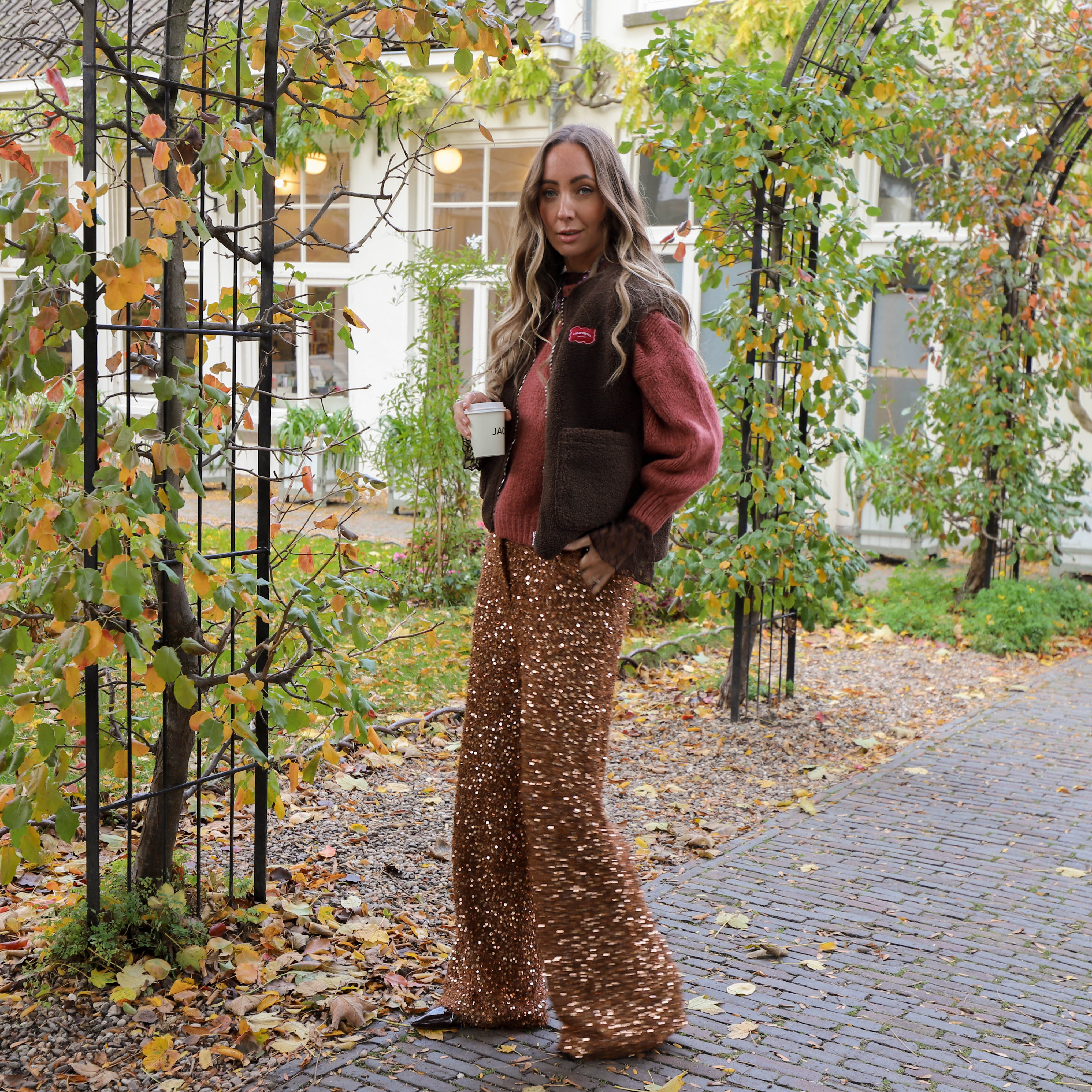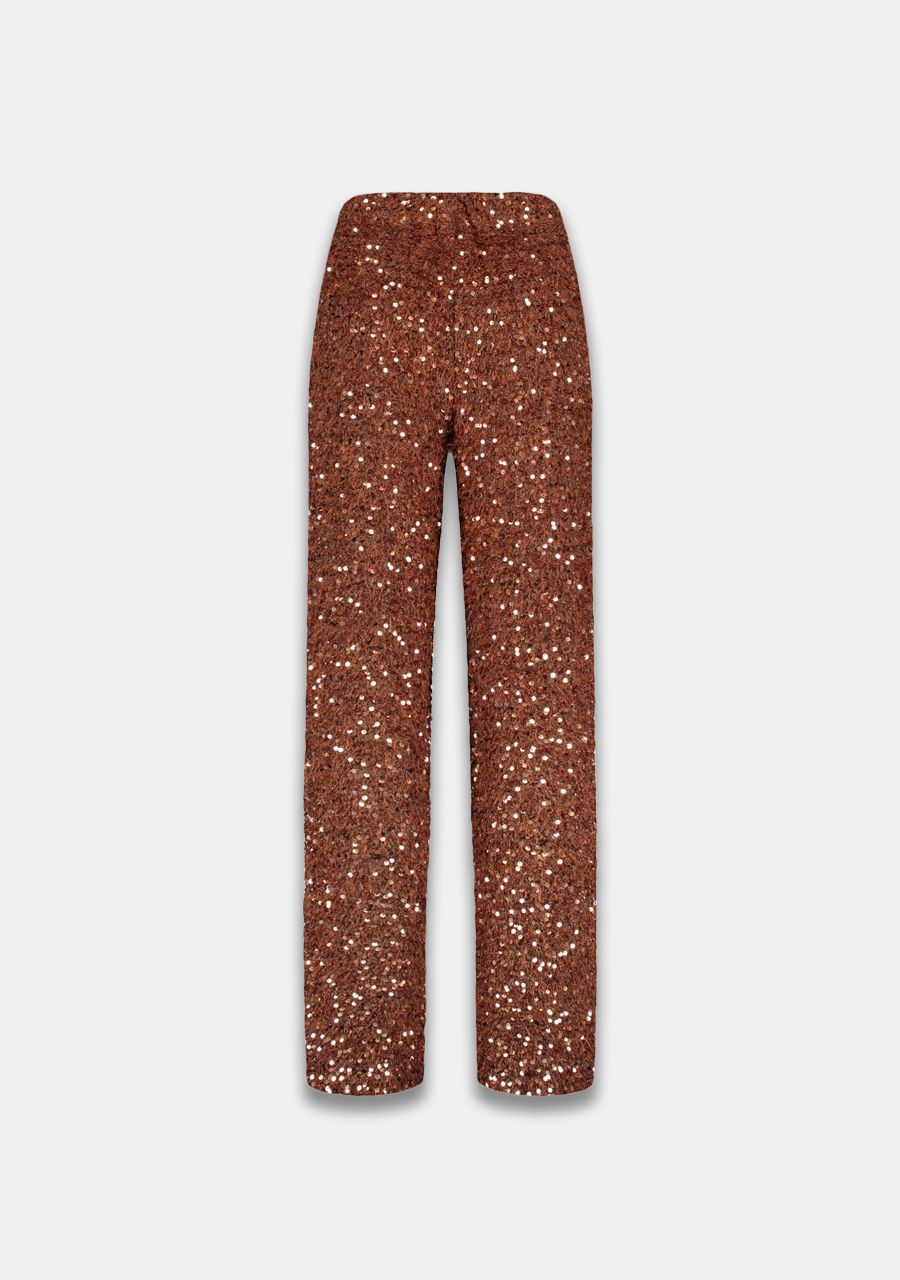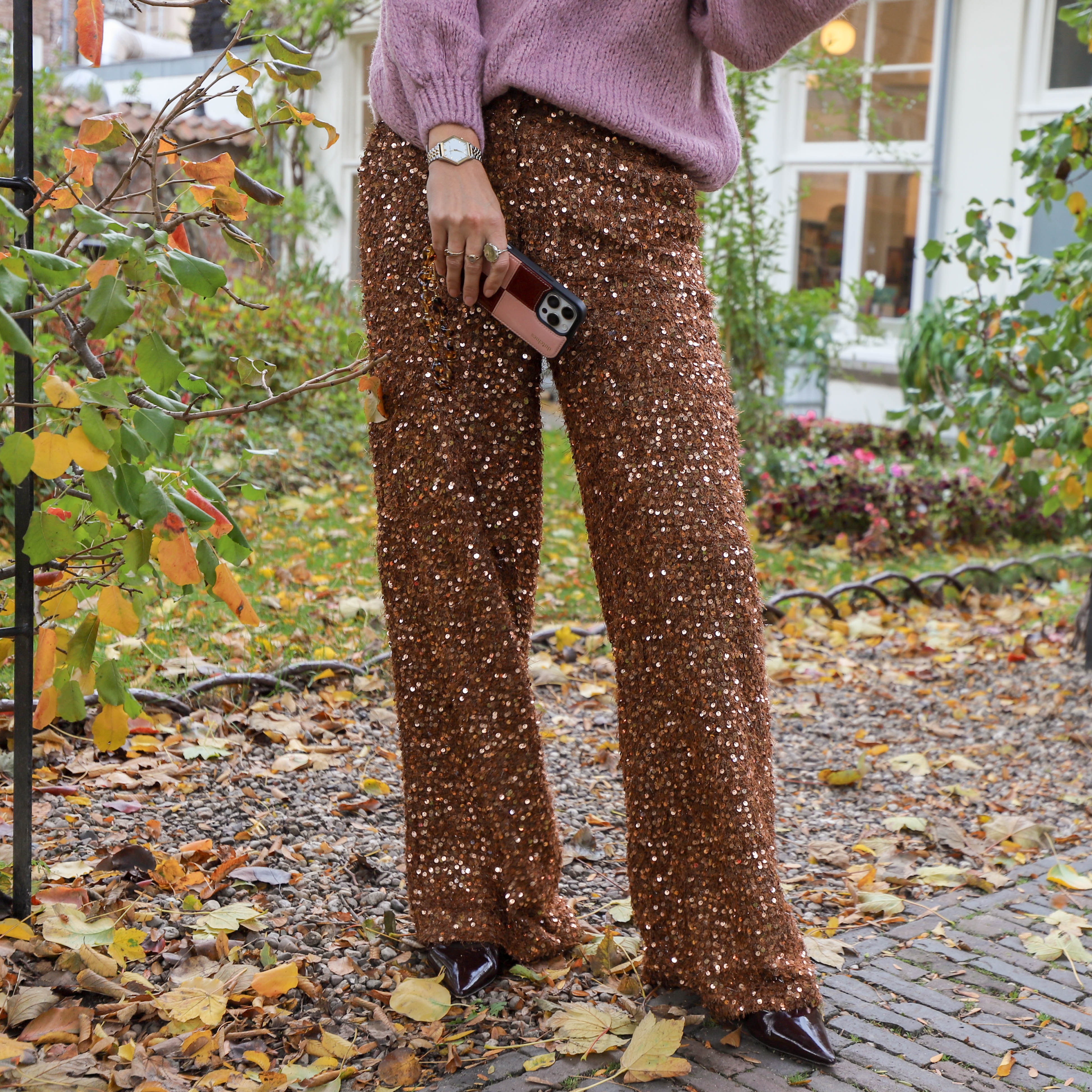 De HOLLY pants in Bronze Sequin is gemaakt om op te vallen. De glinsterende pailletten geven een feestelijke en luxueuze uitstraling, perfect voor de party season. Dankzij de elastische tailleband zit de broek comfortabel en beweegt ze soepel met je mee. De rechte fit zorgt voor een elegante look met een moderne twist.