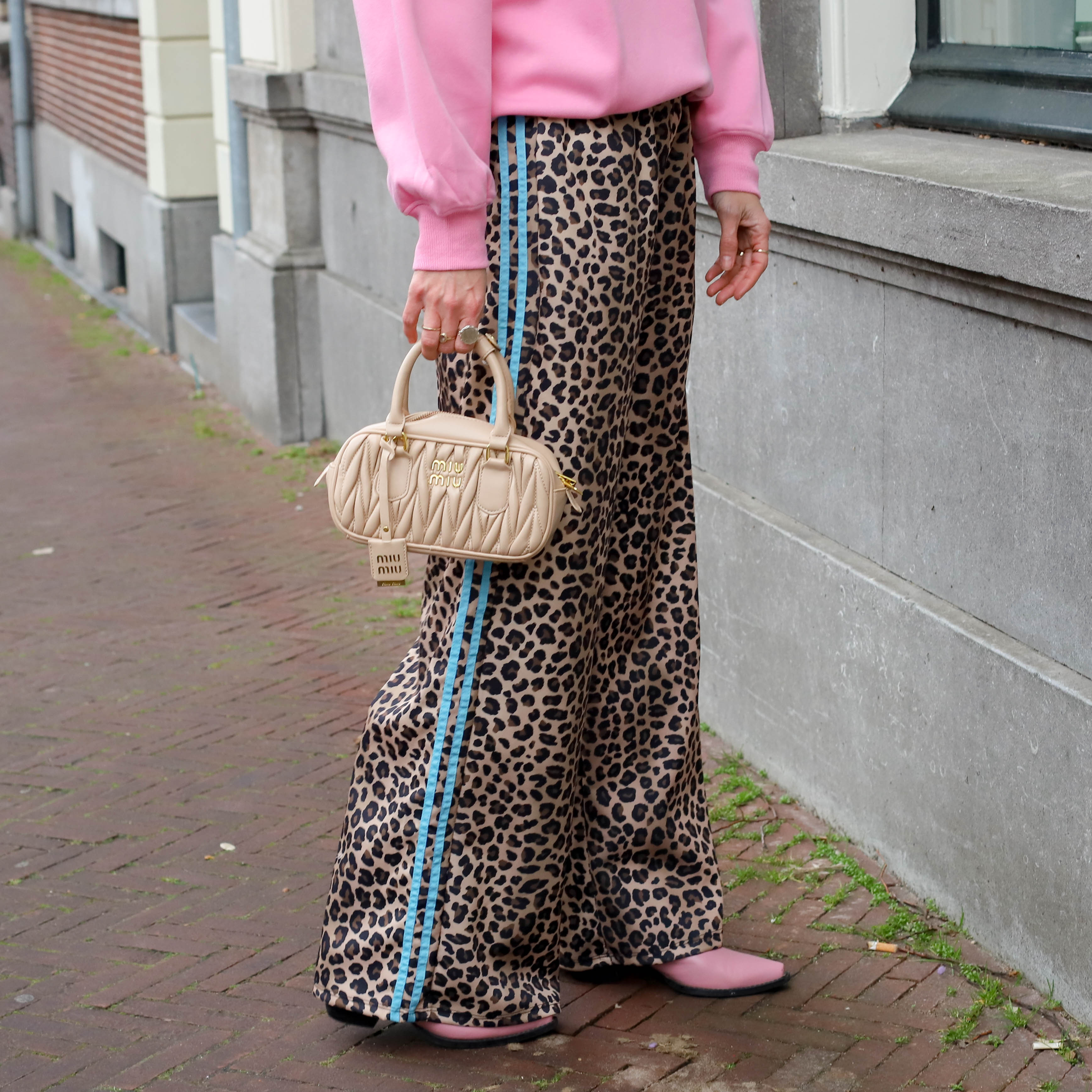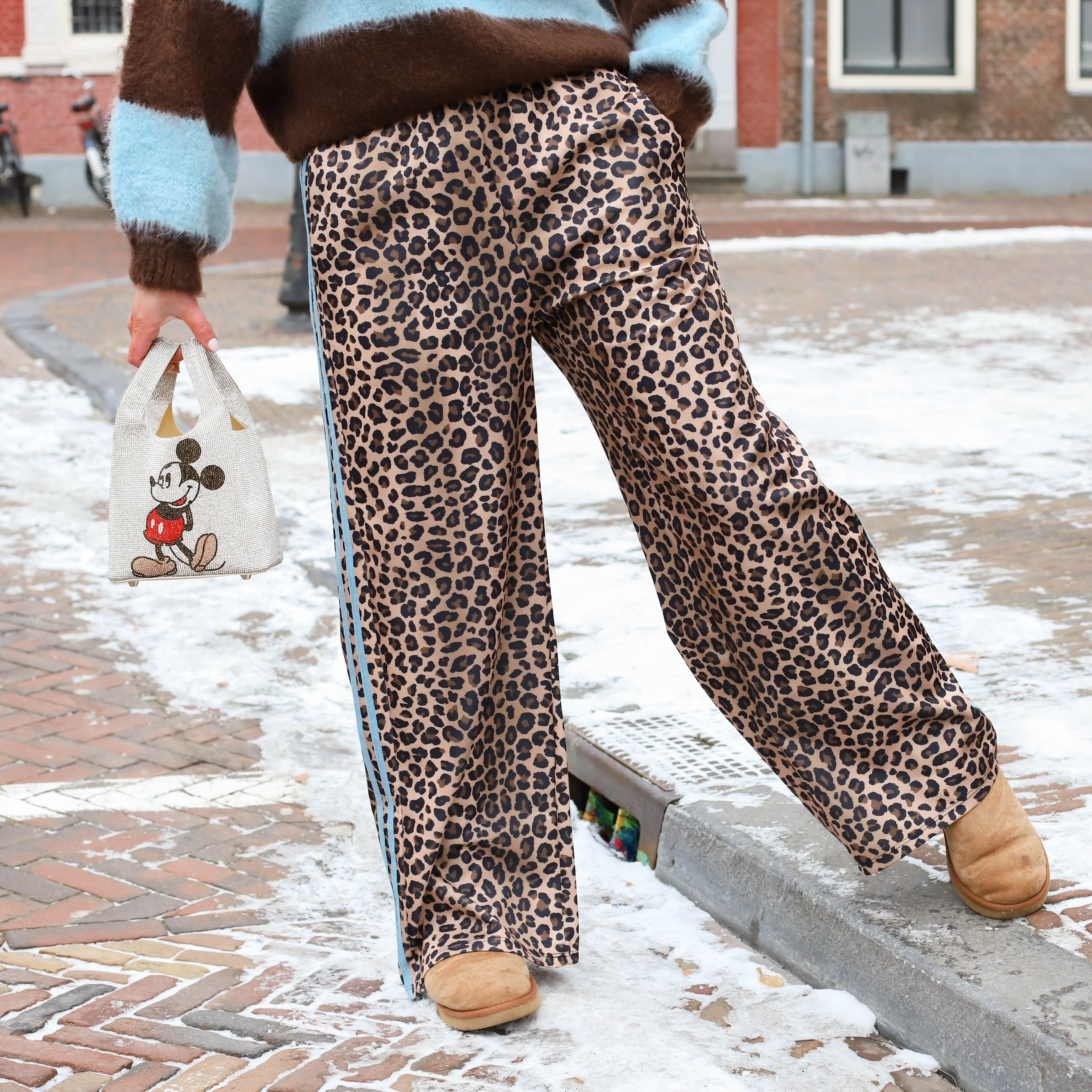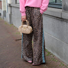 Deze Leopard Broek is een gedurfde en trendy eyecatcher, perfect om een dosis zelfvertrouwen en een wild accent aan je outfit toe te voegen. De broek is voorzien van een klassieke luipaardprint en wordt geaccentueerd door sportieve, contrasterende blauwe strepen langs de zijkanten. Dankzij de elastische tailleband en de soepelvallende stof biedt deze broek zowel een opvallende look als optimaal draagcomfort.