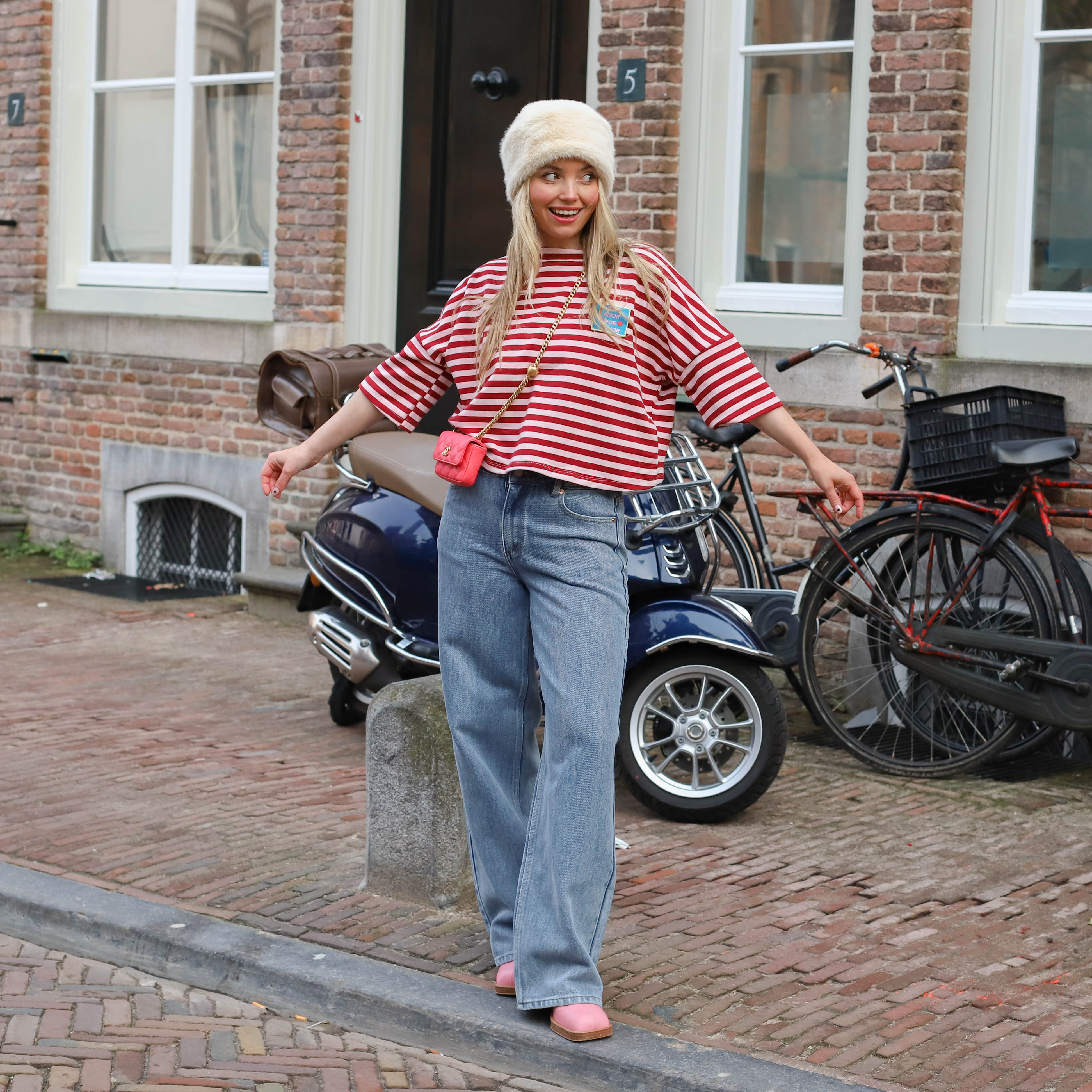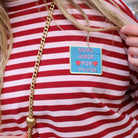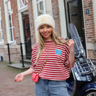 Deze Streep Top is een vrolijke, cropped essential met een speelse vibe. De top heeft een klassiek horizontaal streepdessin in een levendige combinatie van rood en wit. De wijde, oversized pasvorm, de boothals en de driekwart mouwen zorgen voor een nonchalante look. De top heeft een klein, kleurrijk 'Mon Amour' patch op de borst als leuk detail.