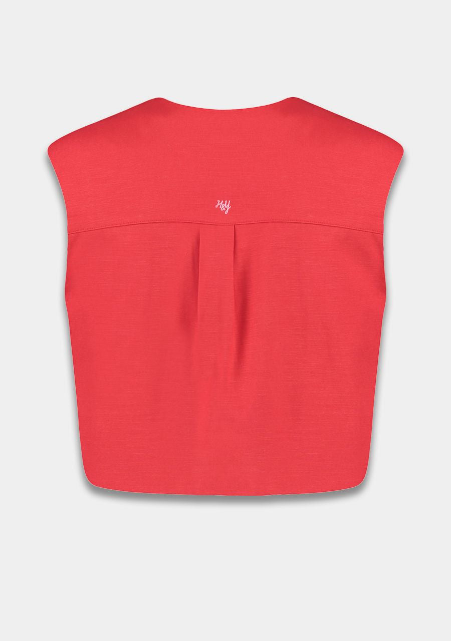 Het SELBY gilet in BITTERSWEET RED is jouw nieuwe statement piece. Met drie speelse striksluitingen aan de voorkant en een mouwloos silhouet is dit gilet zowel elegant als edgy. De luchtige stof en het open design maken het perfect voor warme dagen. Combineer m met de bijpassende LACY short voor een co-ord look die je deze zomer overal wilt dragen. Complete your outfit with this eye-catcher and youre ready to go!