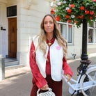 Dit zachte, ecru gilet is een heerlijke toevoeging aan elke outfit. De teddy-achtige stof en de knoopsluiting aan de voorkant geven het een knusse uitstraling. Het gilet is afgewerkt met een schattig hartjes-embleem met de tekst "LOVE YOUR INSIDES", wat het kledingstuk een vrolijke en positieve boodschap meegeeft. Perfect om over een basic top of blouse te dragen.