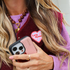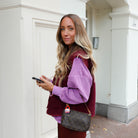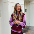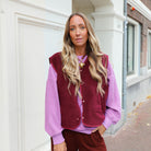 Dit zachte, magenta gilet is een heerlijke toevoeging aan elke outfit. De teddy-achtige stof en de knoopsluiting aan de voorkant geven het een knusse uitstraling. Het gilet is afgewerkt met een schattig hartjes-embleem met de tekst "LOVE YOUR INSIDES", wat het kledingstuk een vrolijke en positieve boodschap meegeeft. Perfect om over een basic top of blouse te dragen.