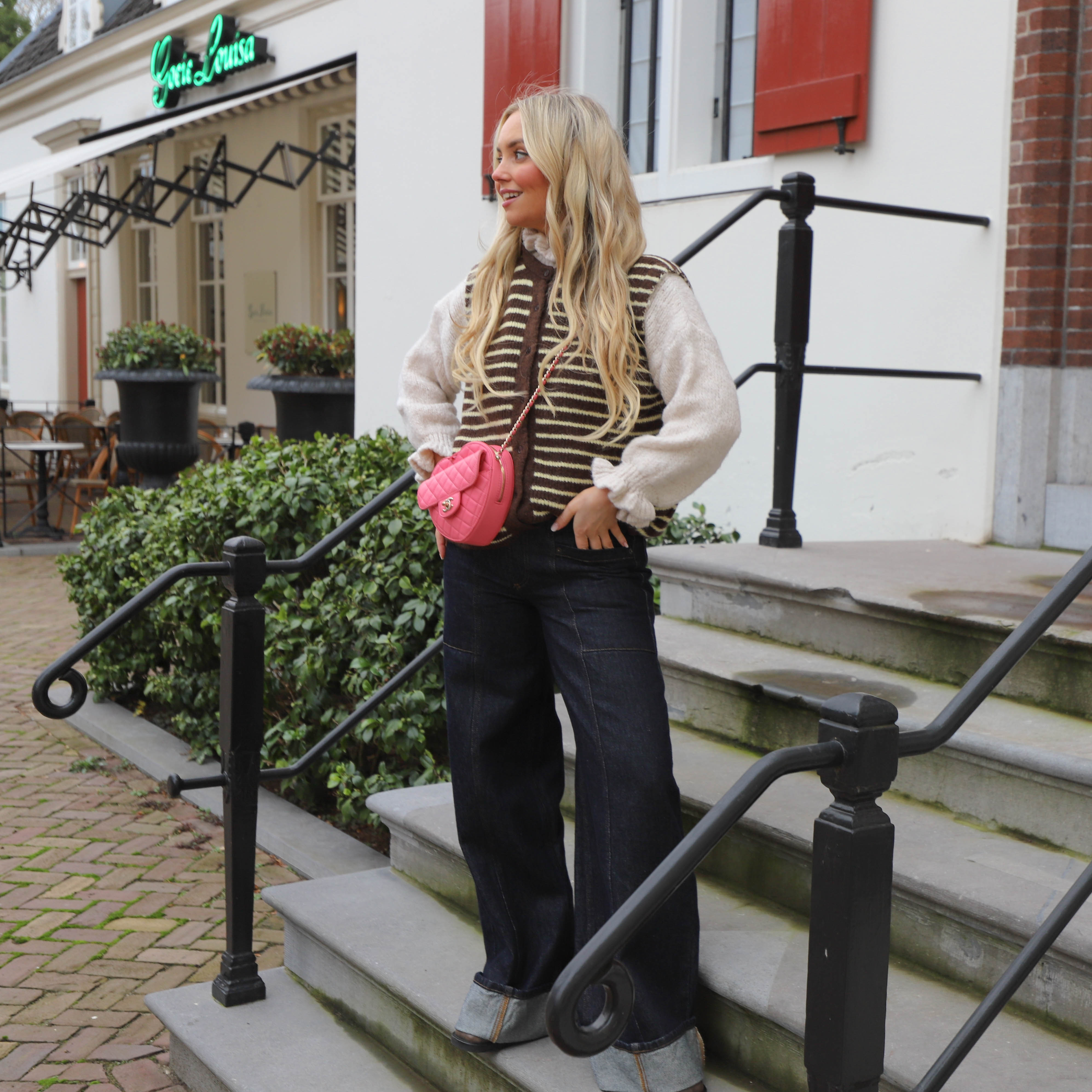 Streep gilet bruin geel