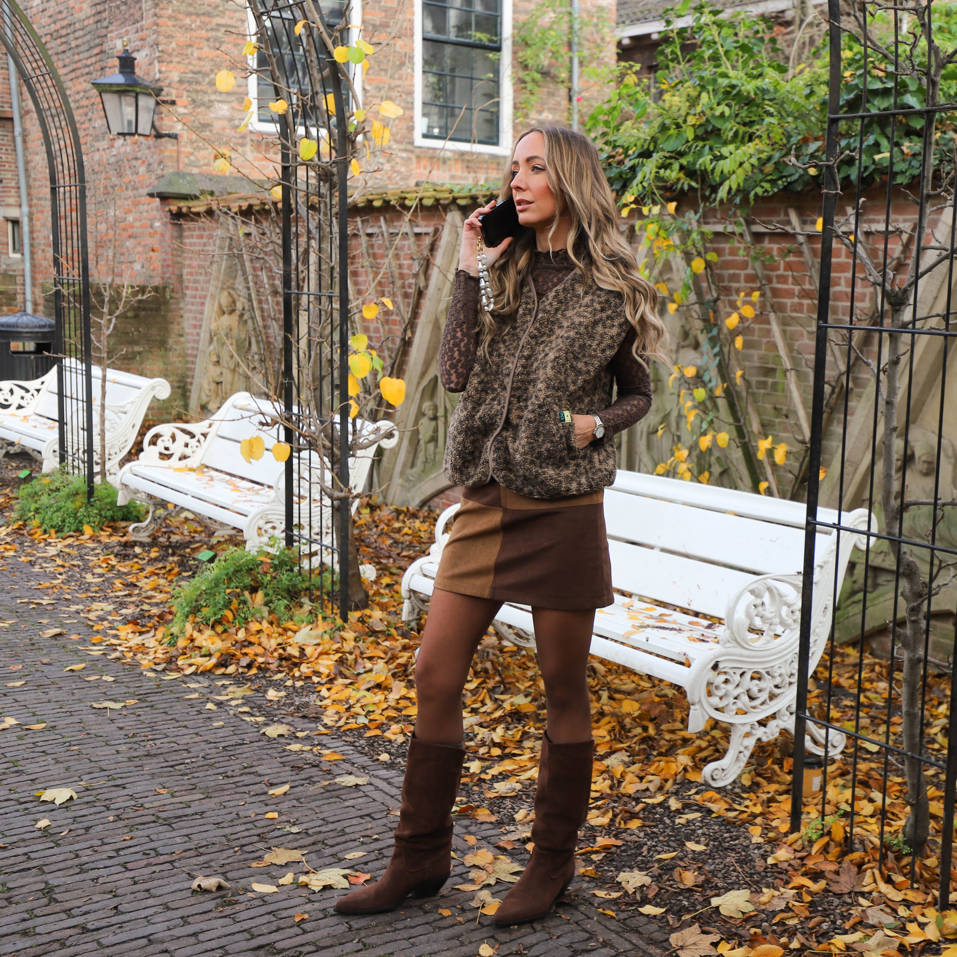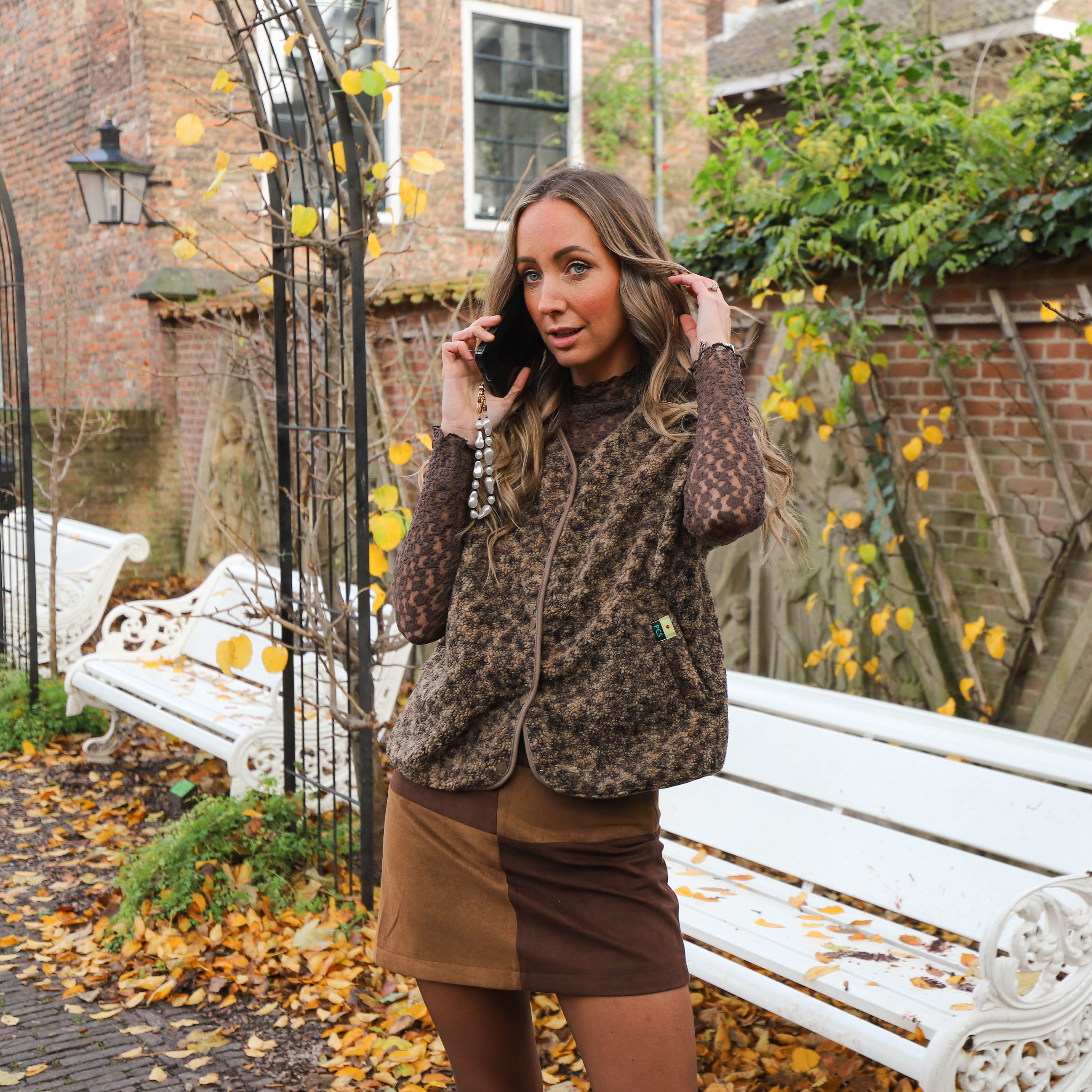 Velvet gilet fur brown